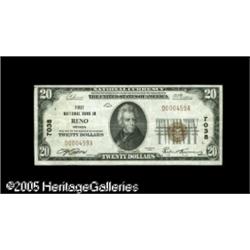 <B>Reno, NV</B></I> - $20 1929 Ty. 1 <B>First NB</B></I> Ch. # 7038<BR>A scarcer denomination from here, with this one of only seven $20 Type 1 examples listed in the census. <B>Very Fine-Extremely Fine,</B></I> with a small margin tear on the left which extends just into the design. Lot:16925