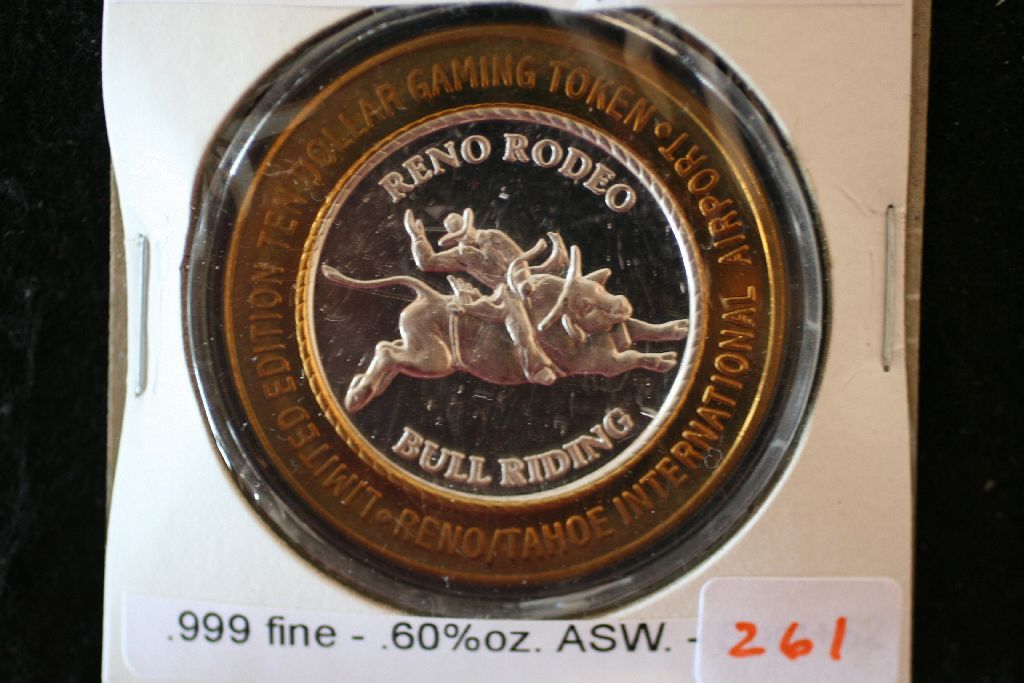 Reno/Tahoe Int'l Airport "Reno Rodeo Bull Riding" Limited Edition Two-Tone $10 Gaming Token; .999 Fine Silver .60% Oz. ASW