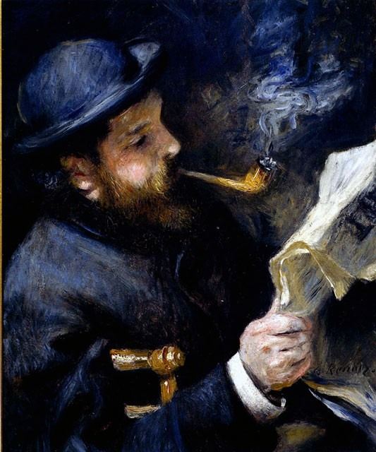 Artist: Pierre-Auguste Renoir 1841-1919 - Title: Claude Monet Reading A Newspaper - Medium: Fine Art Reproduction Giclee on Canvas - Image Size: Approximately 20 inches x 16.5 inches - Unframed on Unstretched Canvas - Biography: An innovative artist,