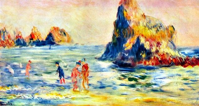 Artist: Pierre-Auguste Renoir 1841-1919 - Title: Cliffs at Guernsey - Medium: Fine Art Reproduction Giclee on Canvas - Image Size: Approximately 10.5 inches x 20 inches - Unframed on Unstretched Canvas - Biography: An innovative artist, Pierre-Auguste