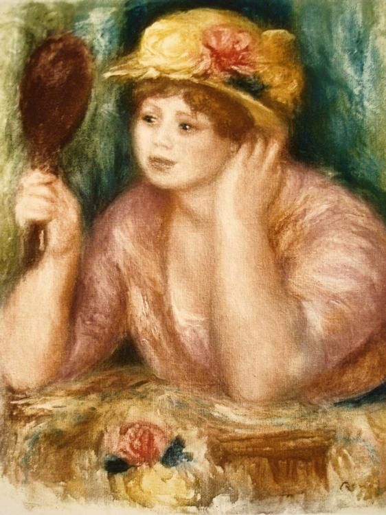 Mirror, mirror that I hold my hand, who is the fairest maiden in the land??Artist: Pierre-Auguste Renoir Title: Femme au Mirroir (Women with the Mirror)Medium: Colored Etching on paper Blind Stamp by Amroise Vollard Estate Size of Image: 7 5/8 " x 9 5/8" Size of Paper: 12 1/2" x 18" Condition: Very Good