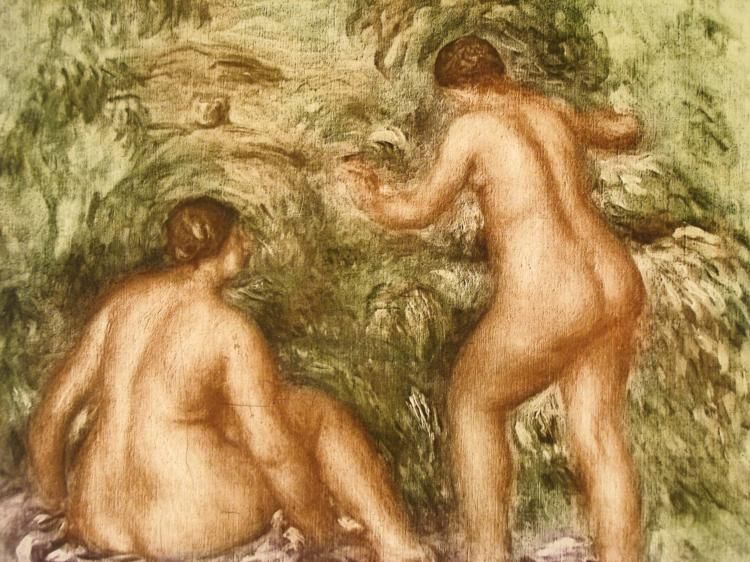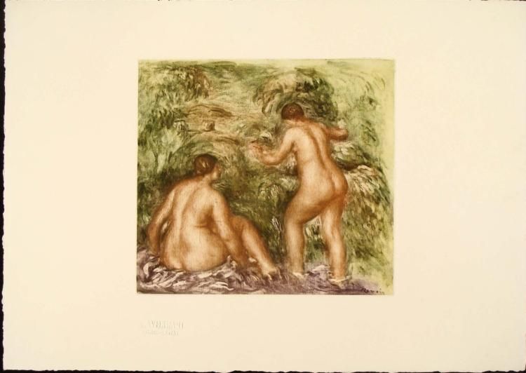 Hey come here, I wanna show you something...Artist: Pierre-Auguste Renoir Title: Nues de Dos (Bare Back) Medium: Colored Etching on paper Blind Stamp by Amroise Vollard Estate Size of Image: 7 7/8" x 8 7/8" Size of Paper: 12 1/2" x 17 5/8" Condi
