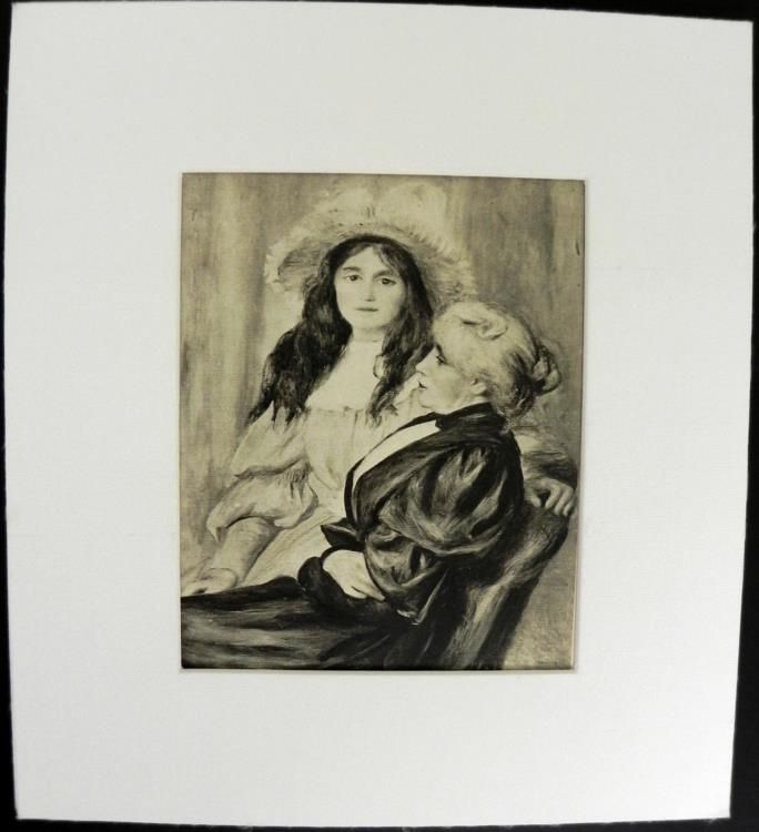 Artist: Pierre-Auguste RenoirTitle: Portrait de Madame Berthe Morisot et da sa fille (Portrait of Bertha Morisot and Daughter) - from 1921 Et Ses AmisMedium: Gravures "hors texte" (Engraving)Signature: Signed in plateMatte: SilkImage size: 7 1/4" x 5 3/4"Matte size: 12" x 11"Justification du Tirage (Justification of Drawing): Affixed to the back of the foam-core backingCondition: Very good**Justification du triage: At the beginning or at the end of a volume, it is the indication given by the editor of a print edition, specifying the different types of copies published and paper used.BiographyAn innovative artist, Pierre-Auguste Renoir was born on February 25, 1841, in Limoges, France. He started out as an apprentice to a porcelain painter and studied drawing in his free time. After years as a struggling painter, Renoir helped launch an artistic movement called Impressionism in 1870s. He eventually became one of the most highly regarded artists of his time. He died in Cagnes-sur-Mer, France, in 1919.*retrieved from: http://www.biography.com/people/pierre-auguste-renoir-20693609#synopsis