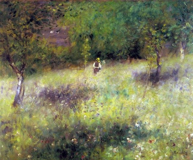 Artist: Pierre-Auguste Renoir 1841-1919 - Title: Fruhling In Chatou - Medium: Fine Art Reproduction Giclee on Canvas - Image Size: Approximately 26.5 inches x 32 inches - Unframed on Unstretched Canvas - Biography: An innovative artist, Pierre-Auguste