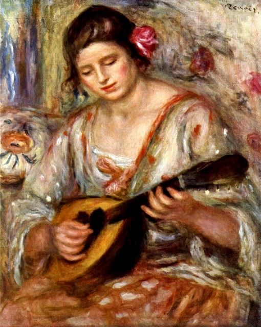 Artist: Pierre-Auguste Renoir 1841-1919 - Title: Girl With Mandolin - Medium: Fine Art Reproduction Giclee on Canvas - Image Size: Approximately 20 inches x 16 inches - Unframed on Unstretched Canvas - Biography: An innovative artist, Pierre-Auguste Re