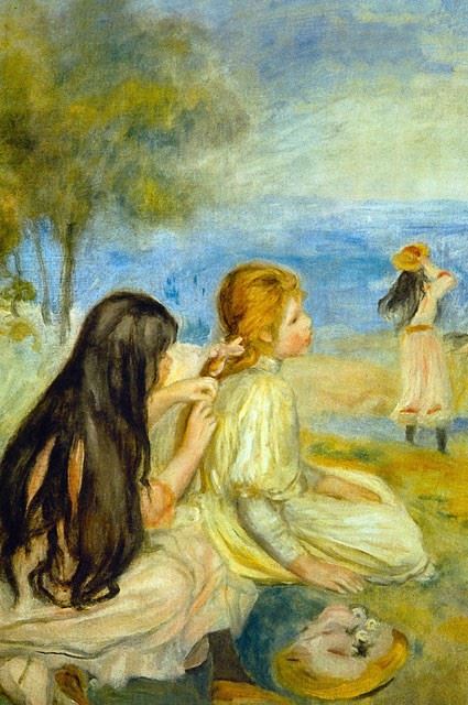 Artist: Pierre-Auguste Renoir 1841-1919 - Title: Girls By The Seaside - Medium: Fine Art Reproduction Giclee on Canvas - Image Size: Approximately 20 inches x 13.25 inches - Unframed on Unstretched Canvas - Biography: An innovative artist, Pierre-Aug