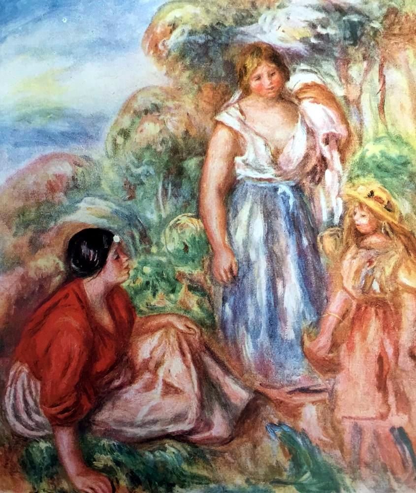Artist Name: Renoir, Pierre Auguste | Title of Art: (Plate Fifteen) Peintures Deux Femmes Et Une Fillette Dans Un Paysage c.1912-14 | Medium: Fine Art Print from Museum Artist | Unsigned & Unnumbered | Art Size: Approx 8 x 10 | Offered Unframed. Framing presentation if shown is for concept only. If you need assistance with custom framing, call the experts at ArtForSale | Circa 1947