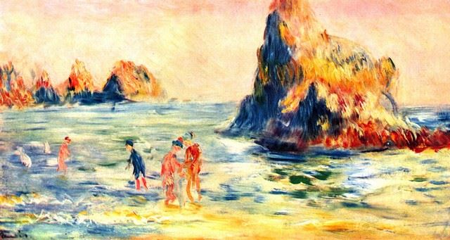 Artist: Pierre-Auguste Renoir 1841-1919 - Title: Rock Cliffs In Guernsey - Medium: Fine Art Reproduction Giclee on Canvas - Image Size: Approximately 10.5 inches x 20 inches - Unframed on Unstretched Canvas - Biography: An innovative artist, Pierre-Aug