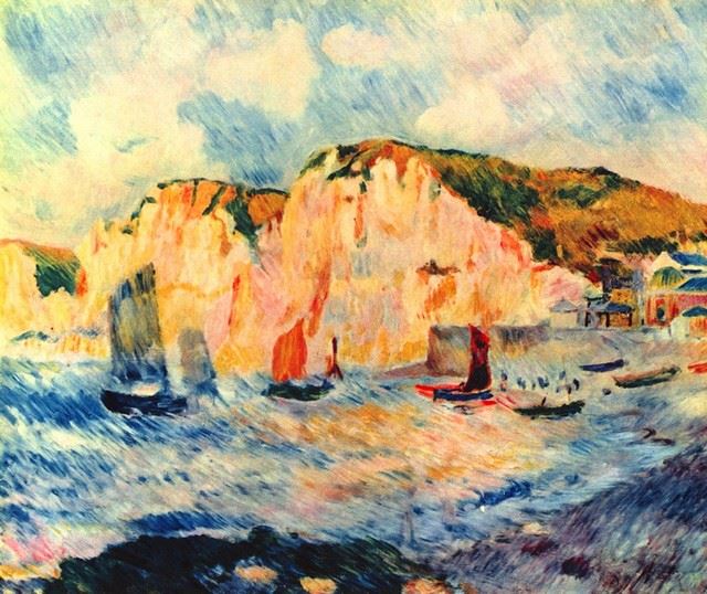Artist: Pierre-Auguste Renoir 1841-1919 - Title: Sea Cliffs - Medium: Fine Art Reproduction Giclee on Canvas - Image Size: Approximately 16.75 inches x 20 inches - Unframed on Unstretched Canvas - Biography: An innovative artist, Pierre-Auguste Renoir