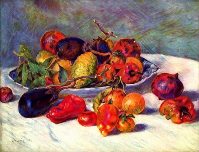Artist: Pierre-Auguste Renoir 1841-1919 - Title: Still Life With Tropical Fruits - Medium: Fine Art Reproduction Giclee on Canvas - Image Size: Approximately 15.25 inches x 20 inches - Unframed on Unstretched Canvas - Biography: An innovative artist