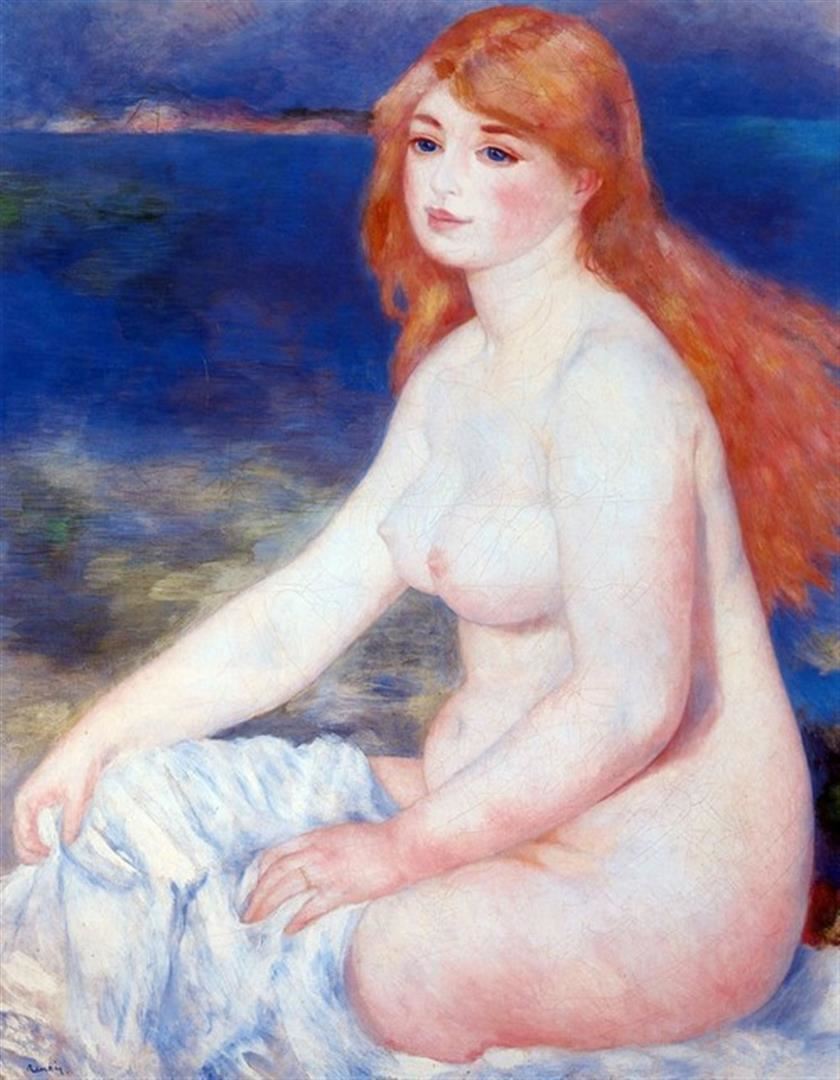 Artist: Pierre-Auguste Renoir 1841-1919 - Title: The Blond Bather #2 - Medium: Fine Art Reproduction Giclee on Canvas - Image Size: Approximately 32 inches x 24.75 inches - Unframed on Unstretched Canvas - Biography: An innovative artist, Pierre-Aug