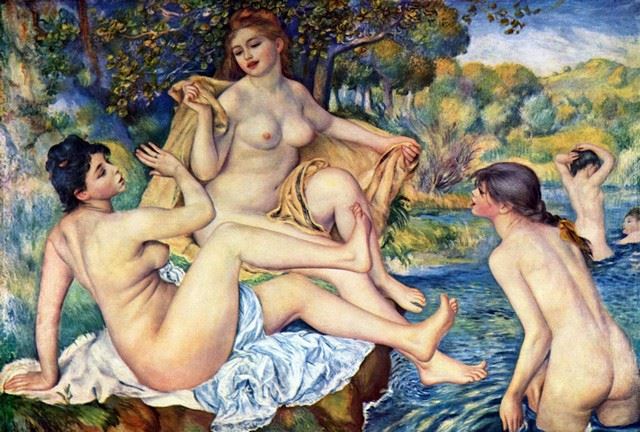 Artist: Pierre-Auguste Renoir 1841-1919 - Title: The Large Bathers - Medium: Fine Art Reproduction Giclee on Canvas - Image Size: Approximately 13.5 inches x 20 inches - Unframed on Unstretched Canvas - Biography: An innovative artist, Pierre-Auguste