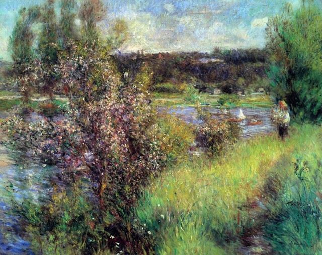Artist: Pierre-Auguste Renoir 1841-1919 - Title: The Seine At Chatou - Medium: Fine Art Reproduction Giclee on Canvas - Image Size: Approximately 20 inches x 15.75 inches - Unframed on Unstretched Canvas - Biography: An innovative artist, Pierre-August