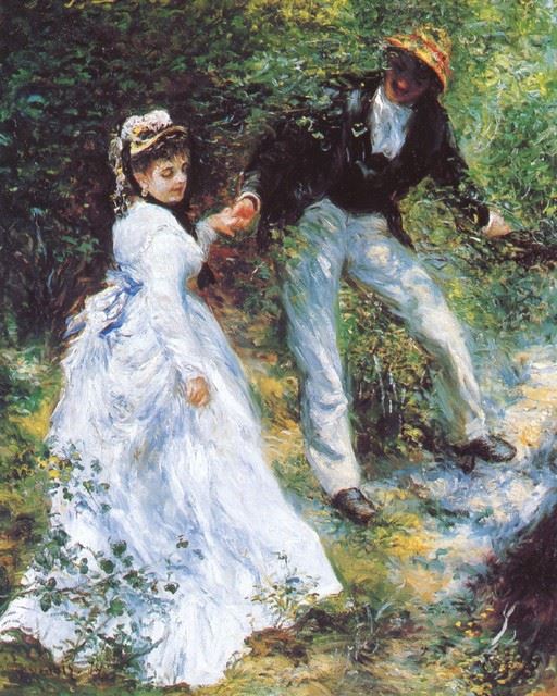 Artist: Pierre-Auguste Renoir 1841-1919 - Title: The Walk - Medium: Fine Art Reproduction Giclee on Canvas - Image Size: Approximately 20 inches x 16 inches - Unframed on Unstretched Canvas - Biography: An innovative artist, Pierre-Auguste Renoir was b