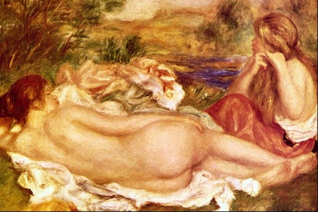 Artist: Pierre-Auguste Renoir 1841-1919 - Title: Two Bathers - Medium: Fine Art Reproduction Giclee on Canvas - Image Size: Approximately 13.25 inches x 20 inches - Unframed on Unstretched Canvas - Biography: An innovative artist, Pierre-Auguste Renoi
