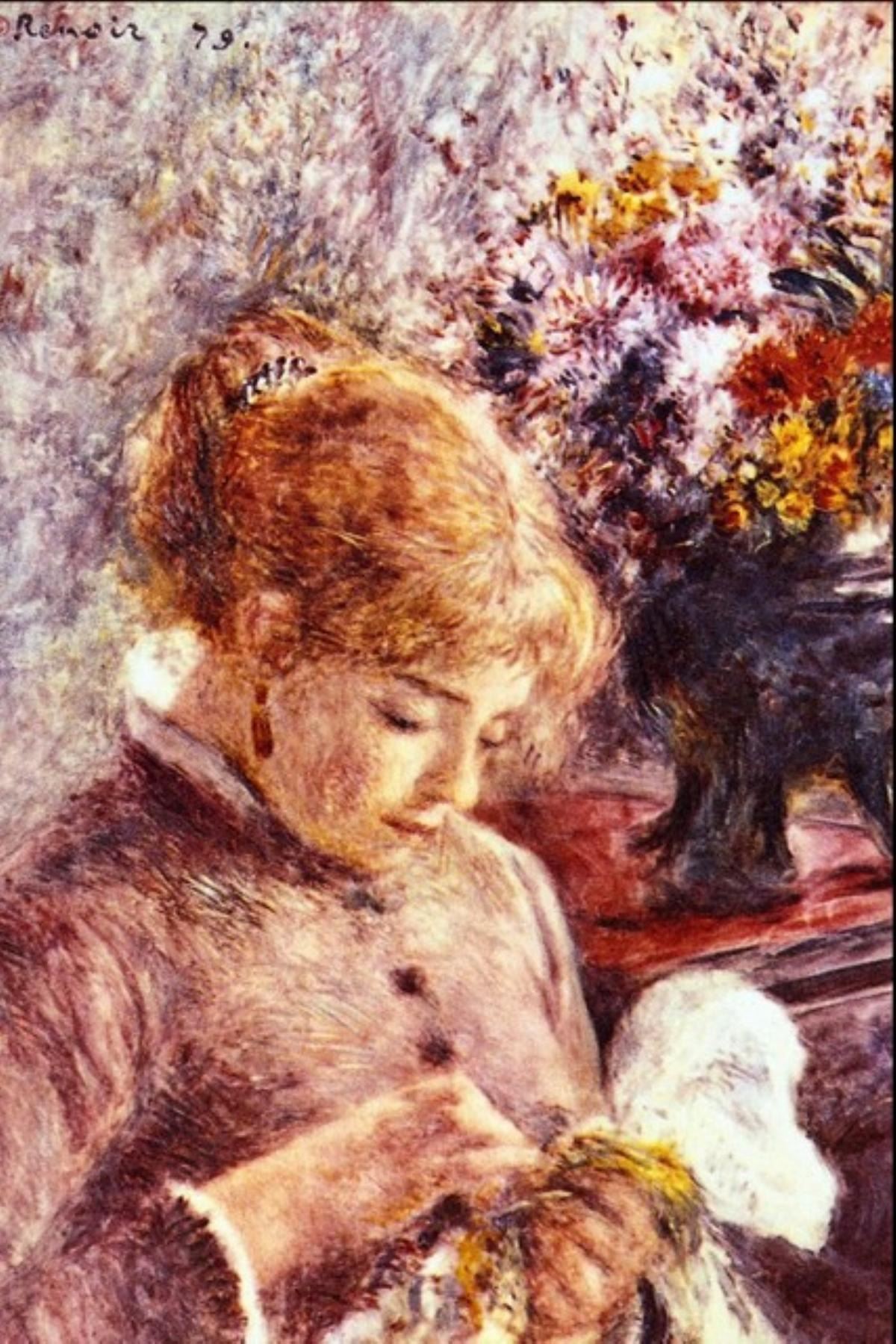 Artist: Pierre-Auguste Renoir 1841-1919 - Title: Woman Embroidering - Medium: Fine Art Reproduction Giclee on Canvas - Image Size: Approximately 20 inches x 13.25 inches - Unframed on Unstretched Canvas - Biography: An innovative artist, Pierre-August