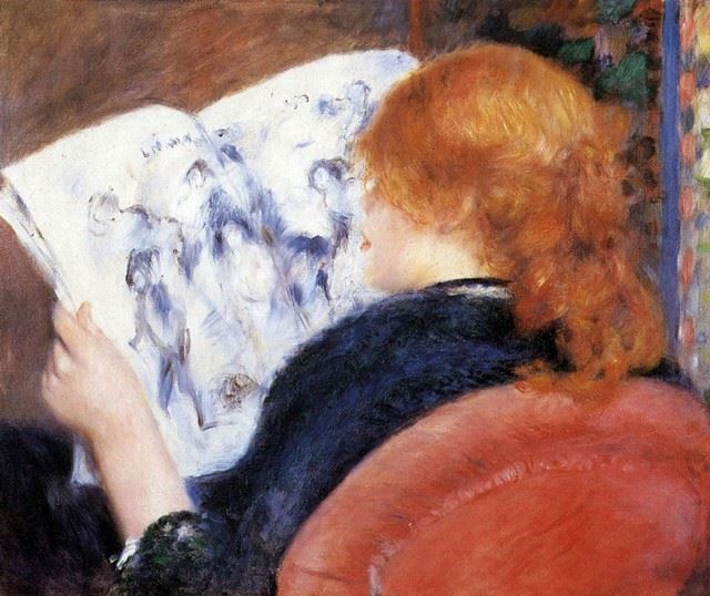 Artist: Pierre-Auguste Renoir 1841-1919 - Title: Young Woman Reads Illustrated Journal - Medium: Fine Art Reproduction Giclee on Canvas - Image Size: Approximately 16.5 inches x 20 inches - Unframed on Unstretched Canvas - Biography: An innovative a