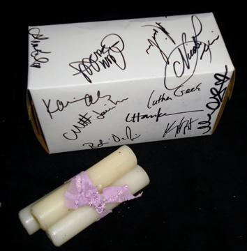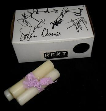 Rent Broadway Musical Justin Johnston Costume Piece and Cast Autographed Candles