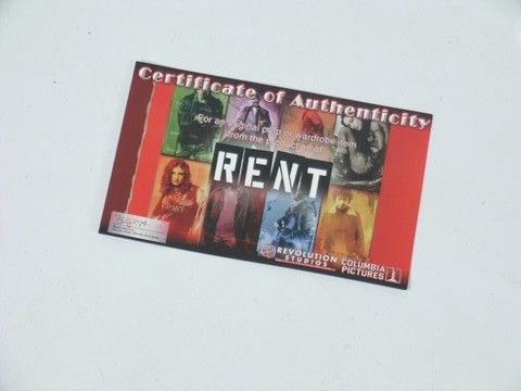 Loosely based on Puccini's grand opera La Boheme, "Rent" was an updated version, taking place in New York, rather than Paris. It became a smash Broadway hit, and then an equally successful box office smash feature in 2005. These are hero leg warmers worn by star Mimi (Rosario Dawson) in the "Season Of Love" song sequence. Comes with a COA.