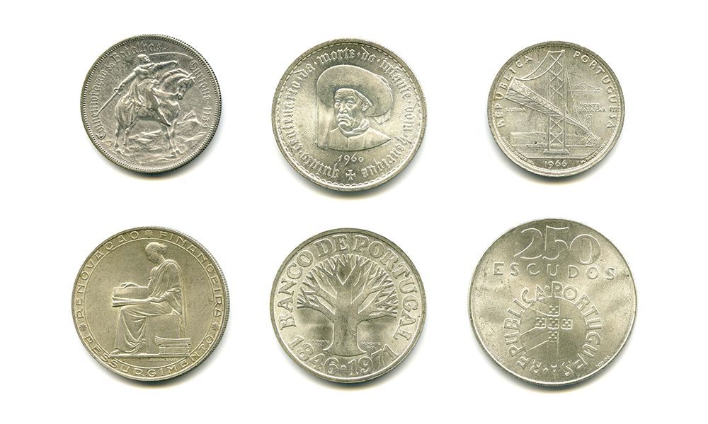 10$00 1928 Batalha de Ourique (x3); 20$00 1953 Renovação Financeira (x3); 20, 10 e 5$00 1960 ID Henrique (x2); 20$00 1966 Ponte Salazar (x3); 50$00 1968 Pedro Álvares Cabral (x3), 1969 Marechal Carmona (x3), 1969 Vasco da Ga