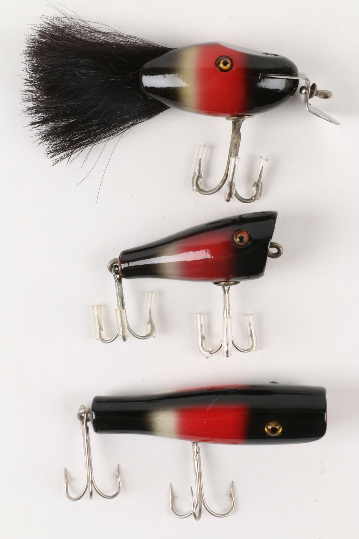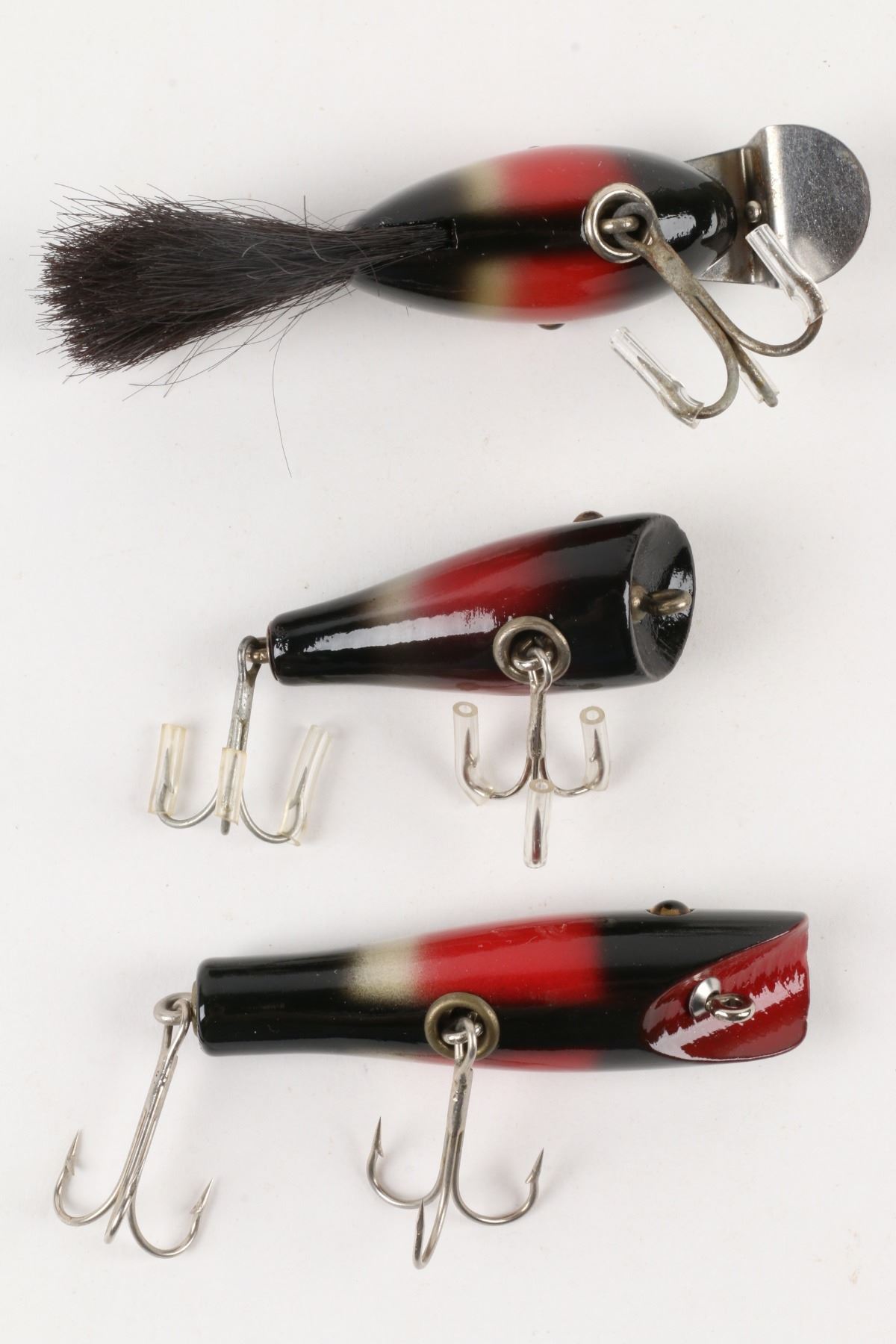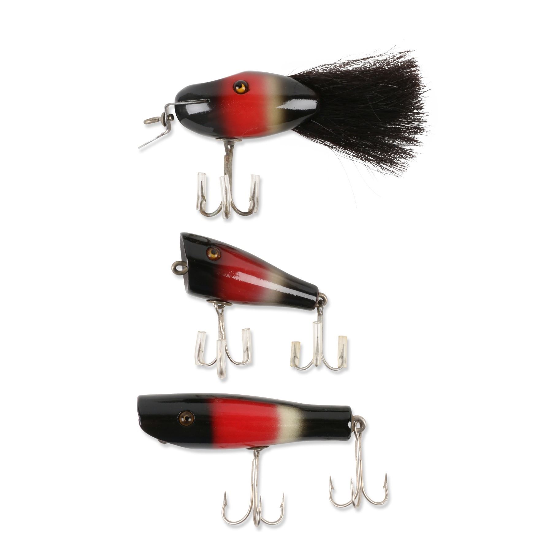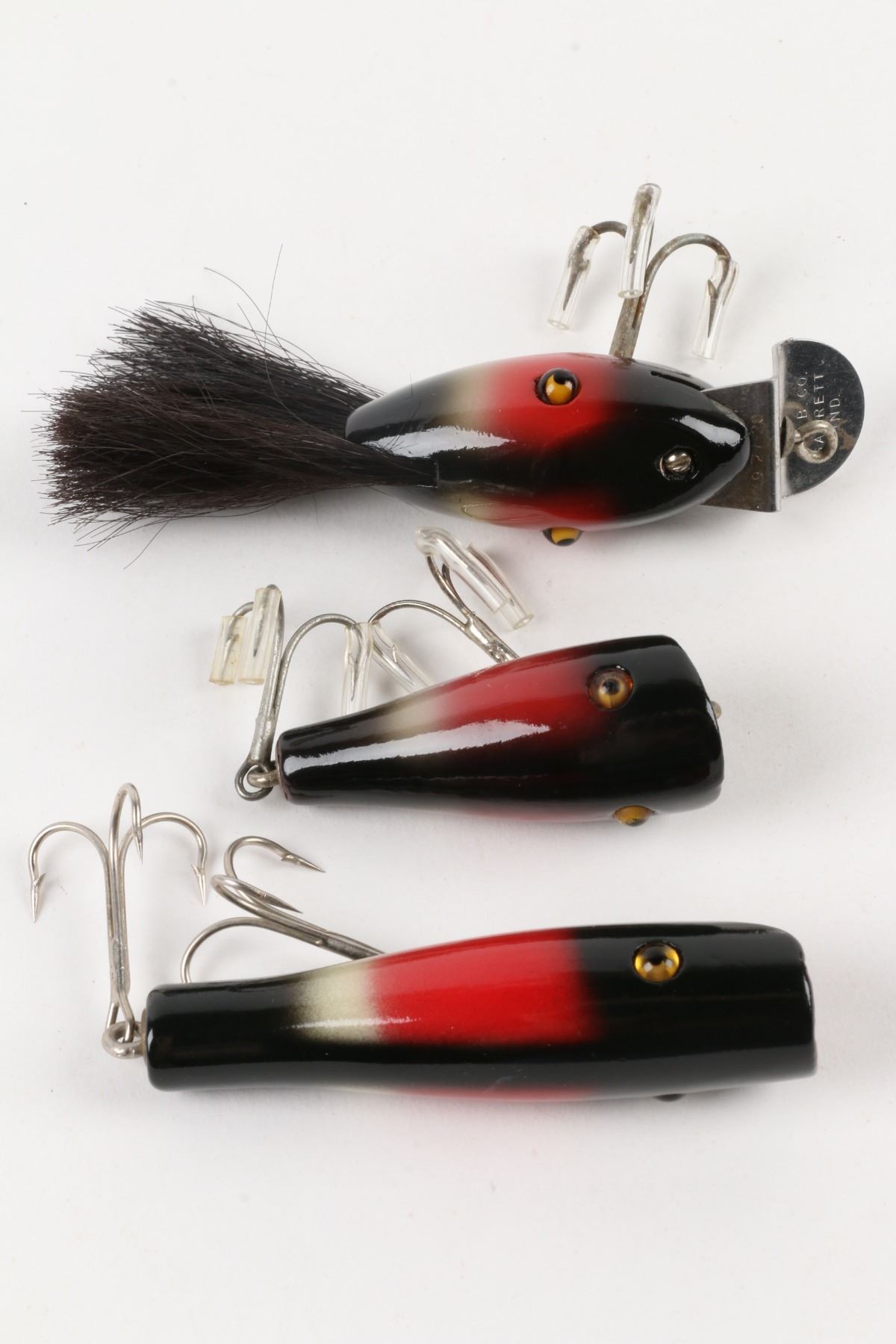 Creek Chub, United States. Re-paint. Material: Wood. Quantity: 2. Grade: EX. 2" - 3". Est. $75-100.