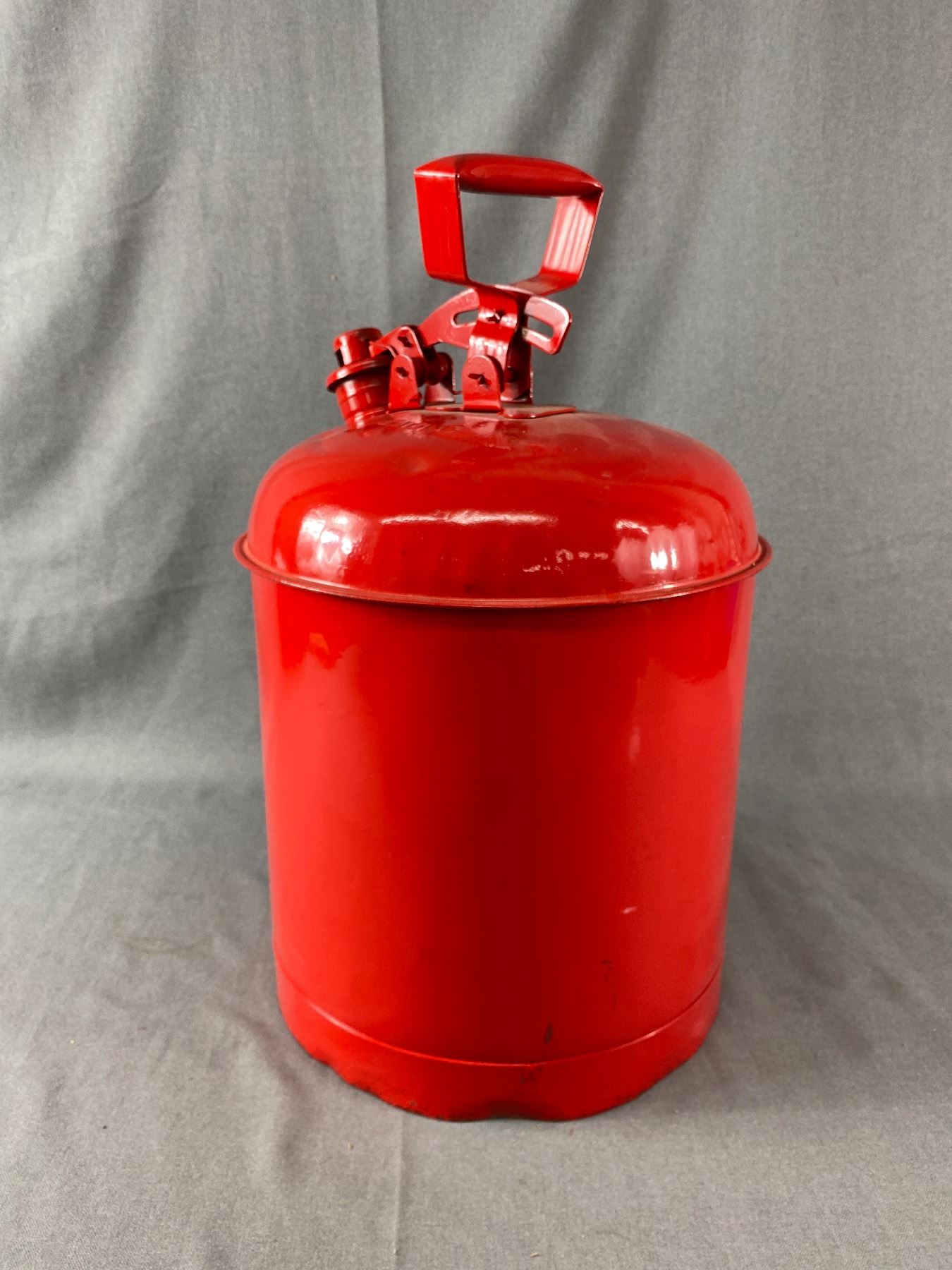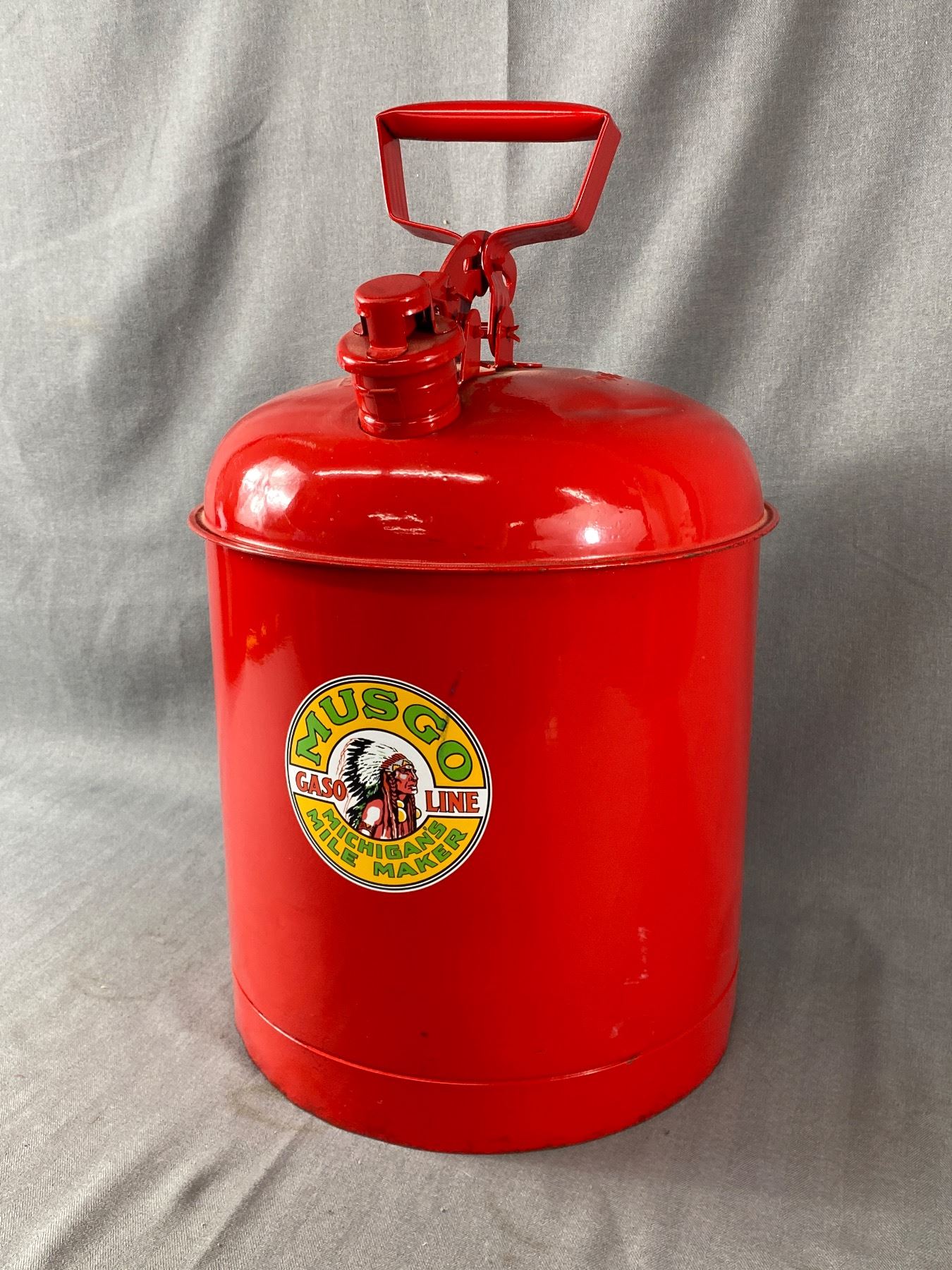 Repainted Metal Gas Can w/ Musgo Gaso Line Sticker. Approx.. 15"H