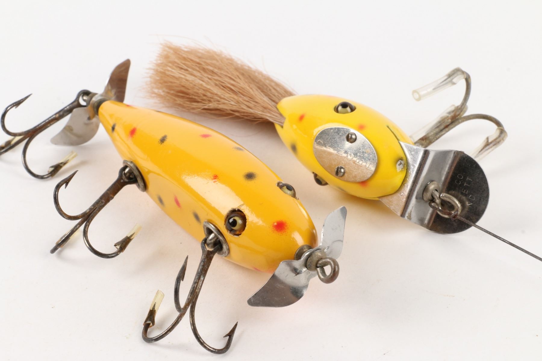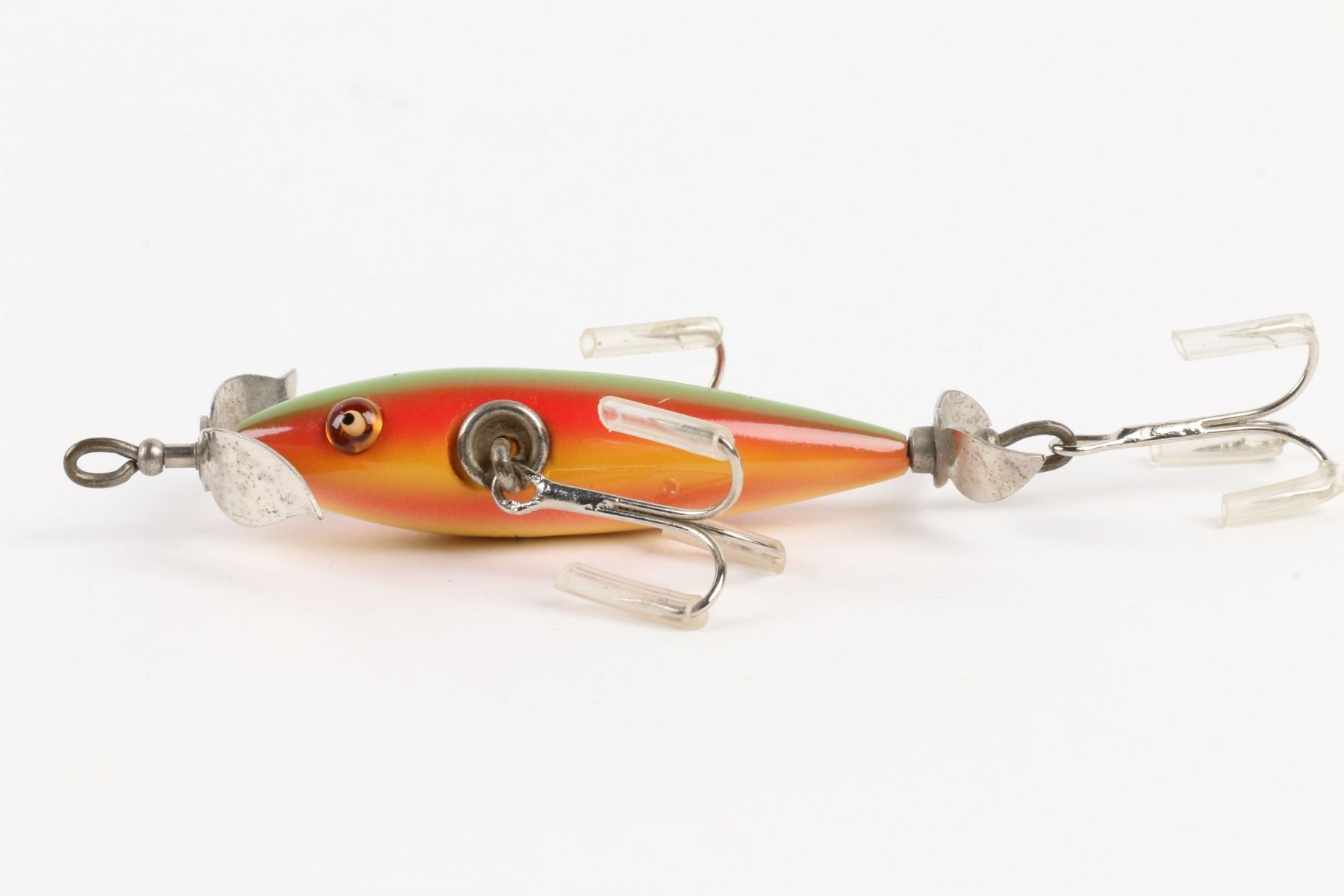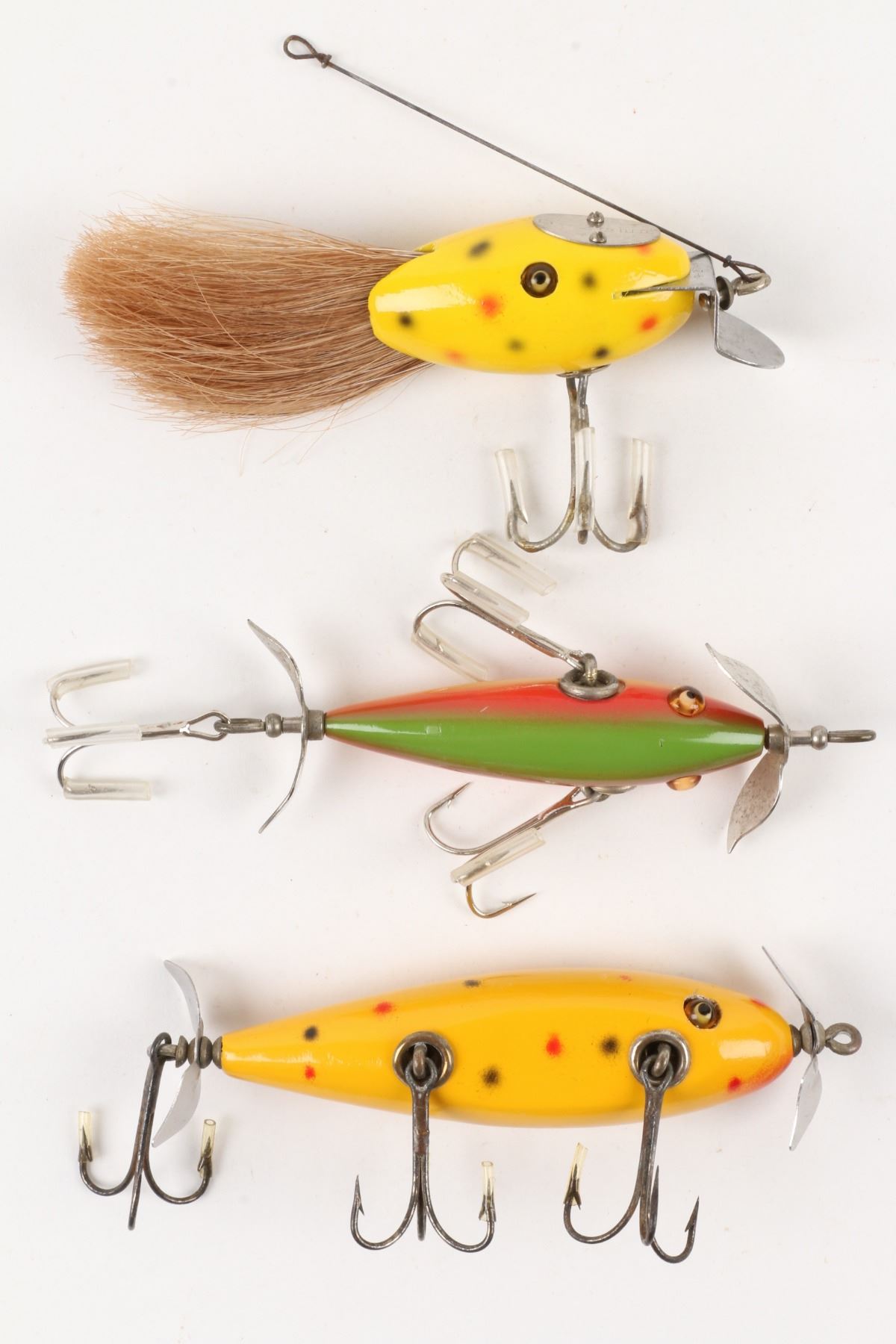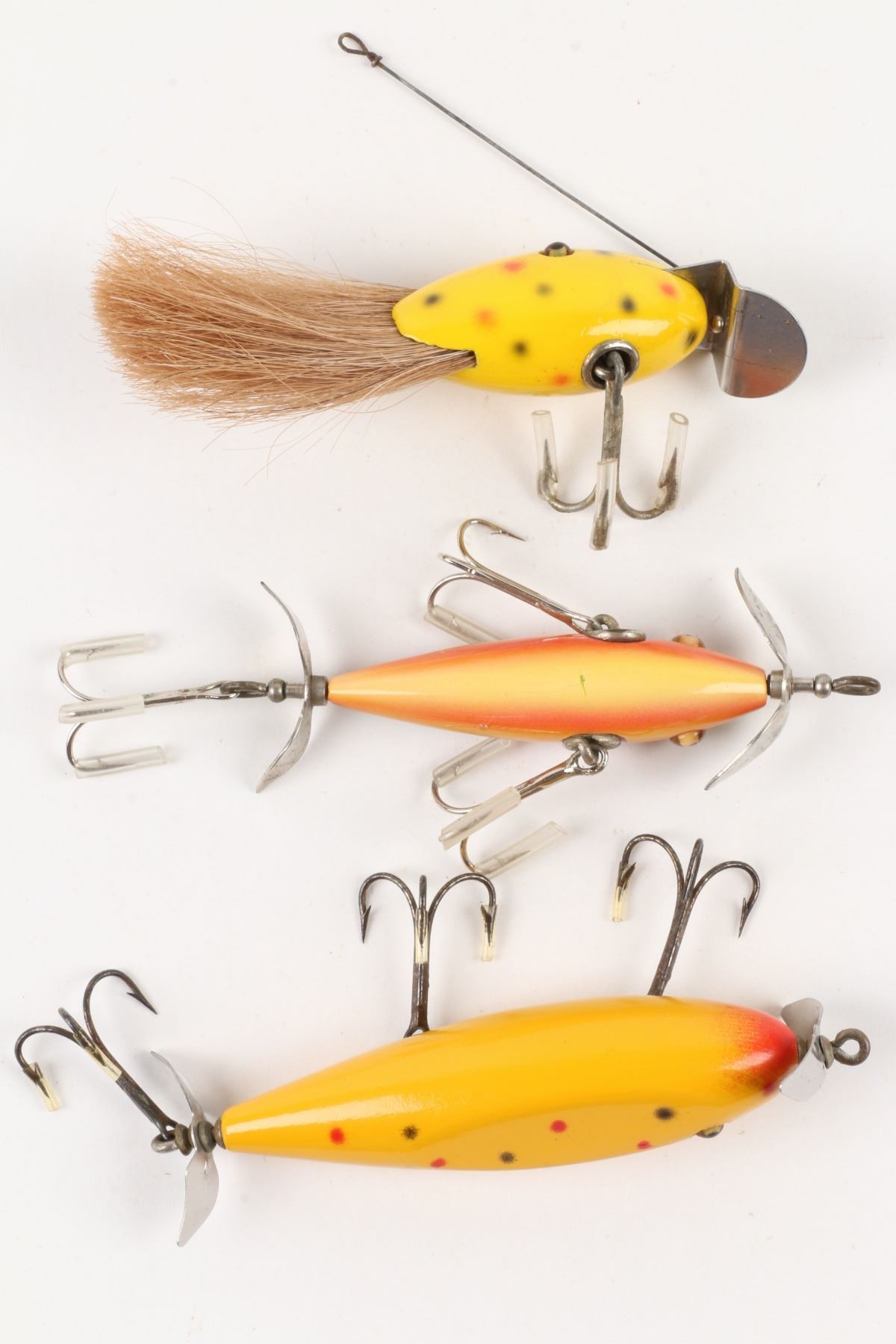 Creek Chub and Pflueger, United States. Re-paint. Material: Wood. Quantity: 3. Grade: EX. 2" - 3.5" each. Est. $75-100.