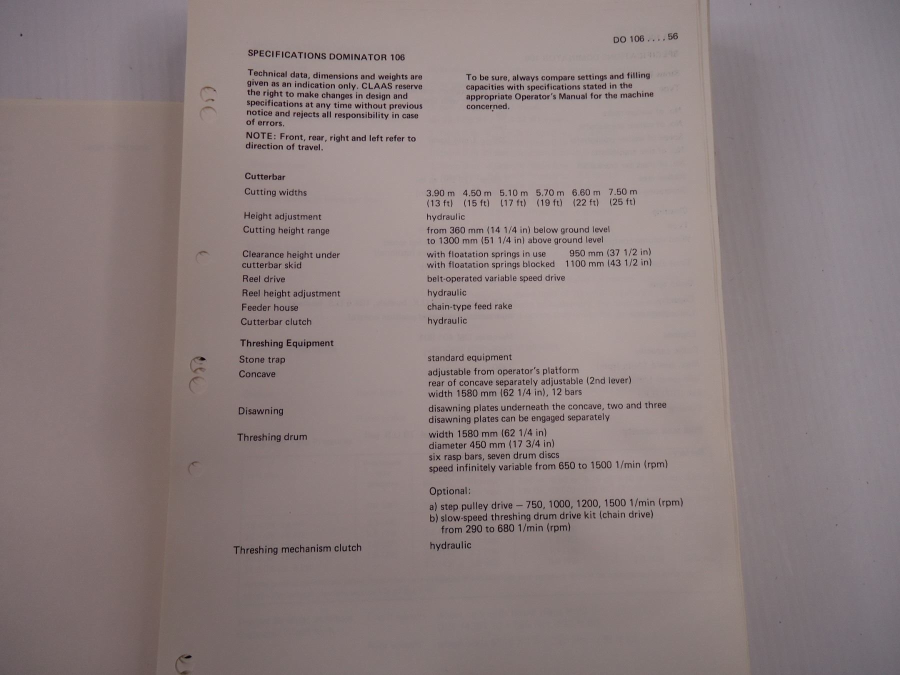 Repair Manual for Claas Dominator 106-56-Loose Pages-Needs Binders