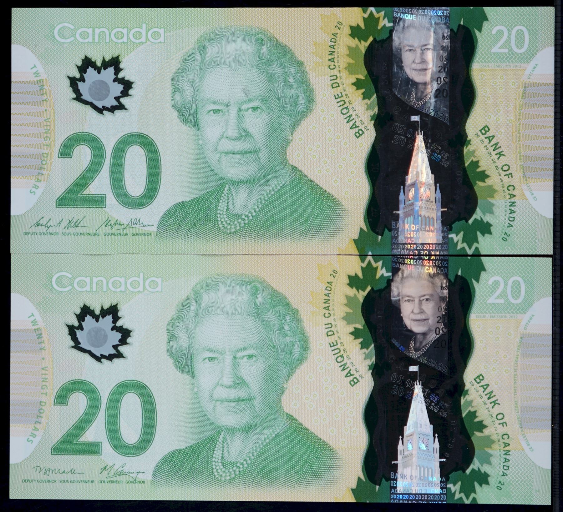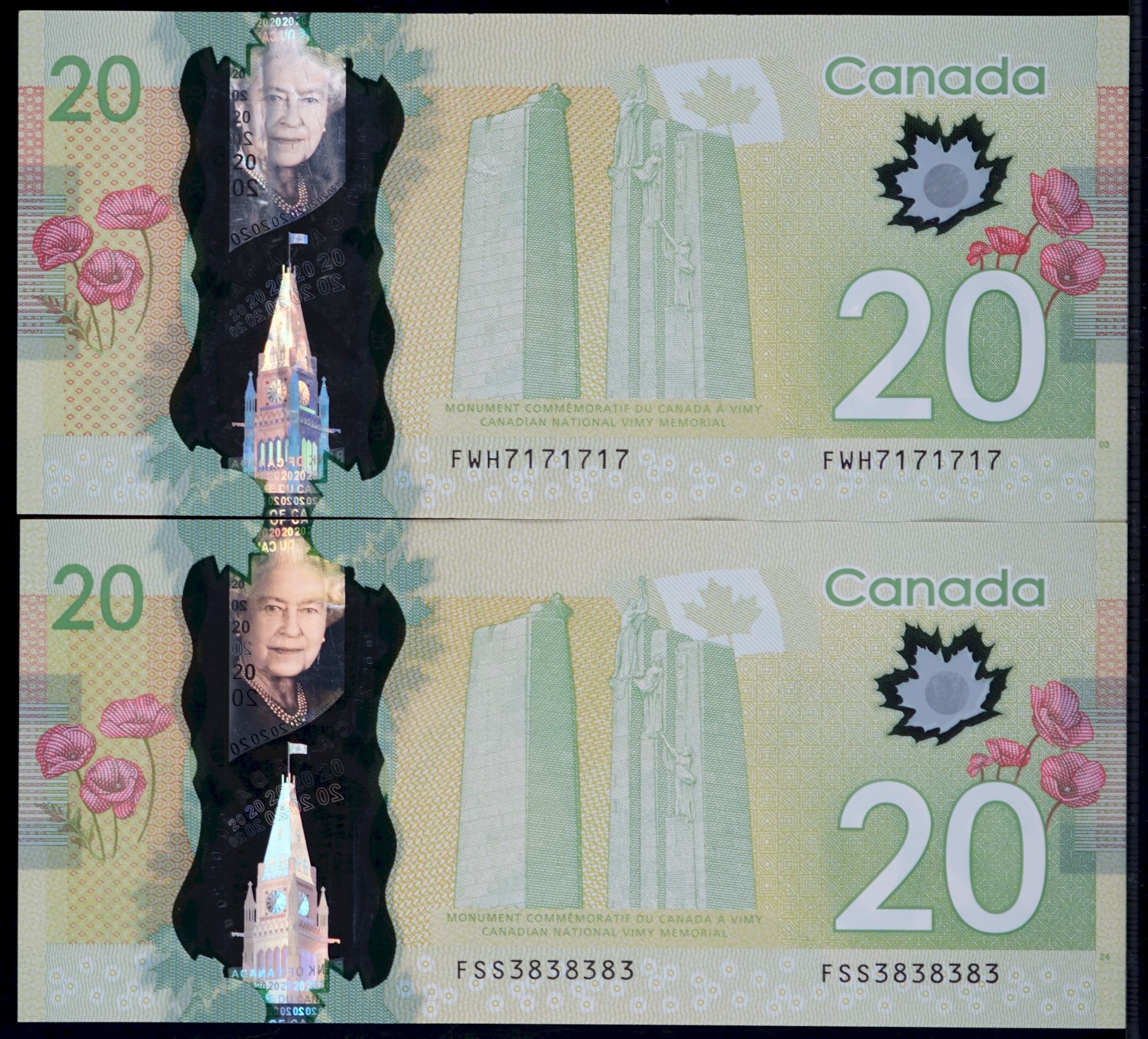 Repeater Notes; 2012 $20 #FWH7171717 & #FSS3838383. Lot of 2 notes VF to EF
