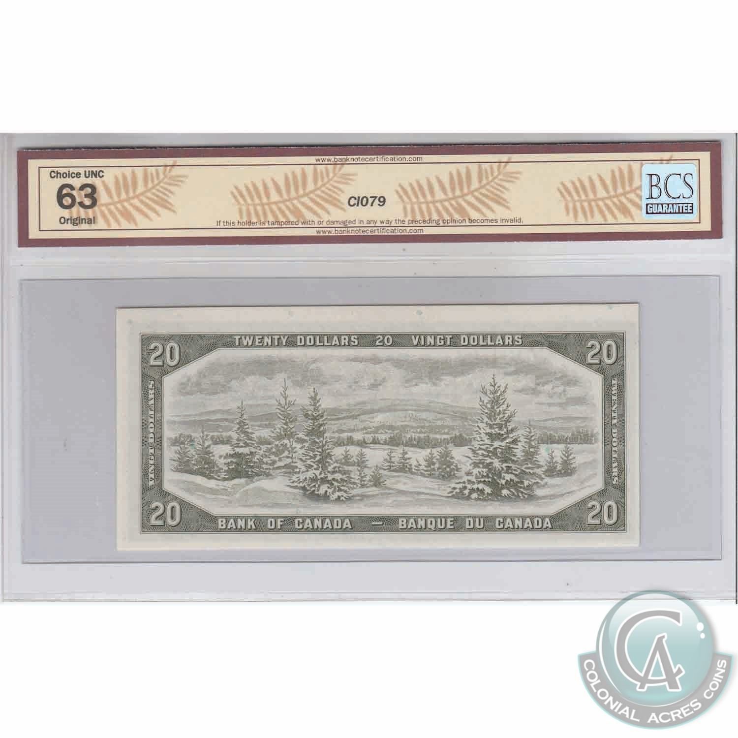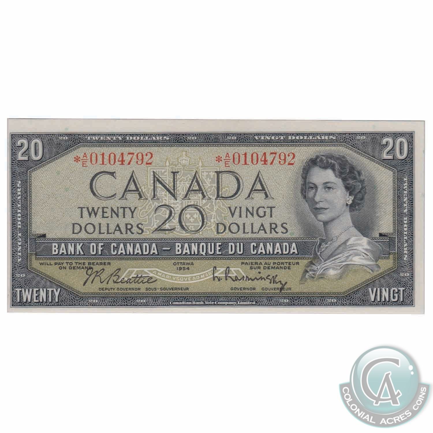 Replacement BC-41bA 1954 Bank of Canada $20, Beattie-Rasminsky Replacement, *AE 0104792, BCS CUNC-63