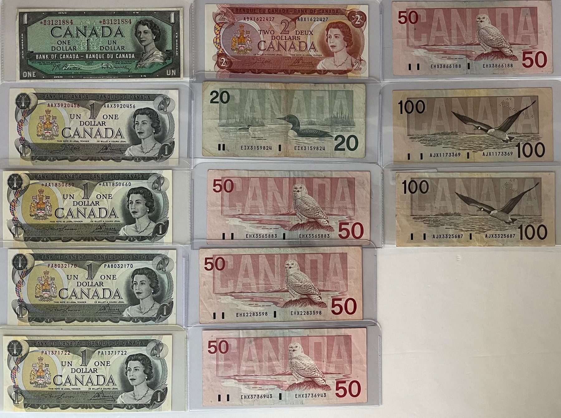Replacement & Changeover Lot; Mixed denominations, varieties and dates. Lot of 13 notes. F-VF to Uncirculated. An interesting and cool lot.