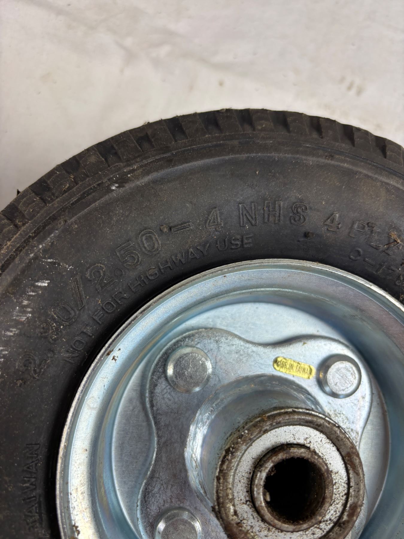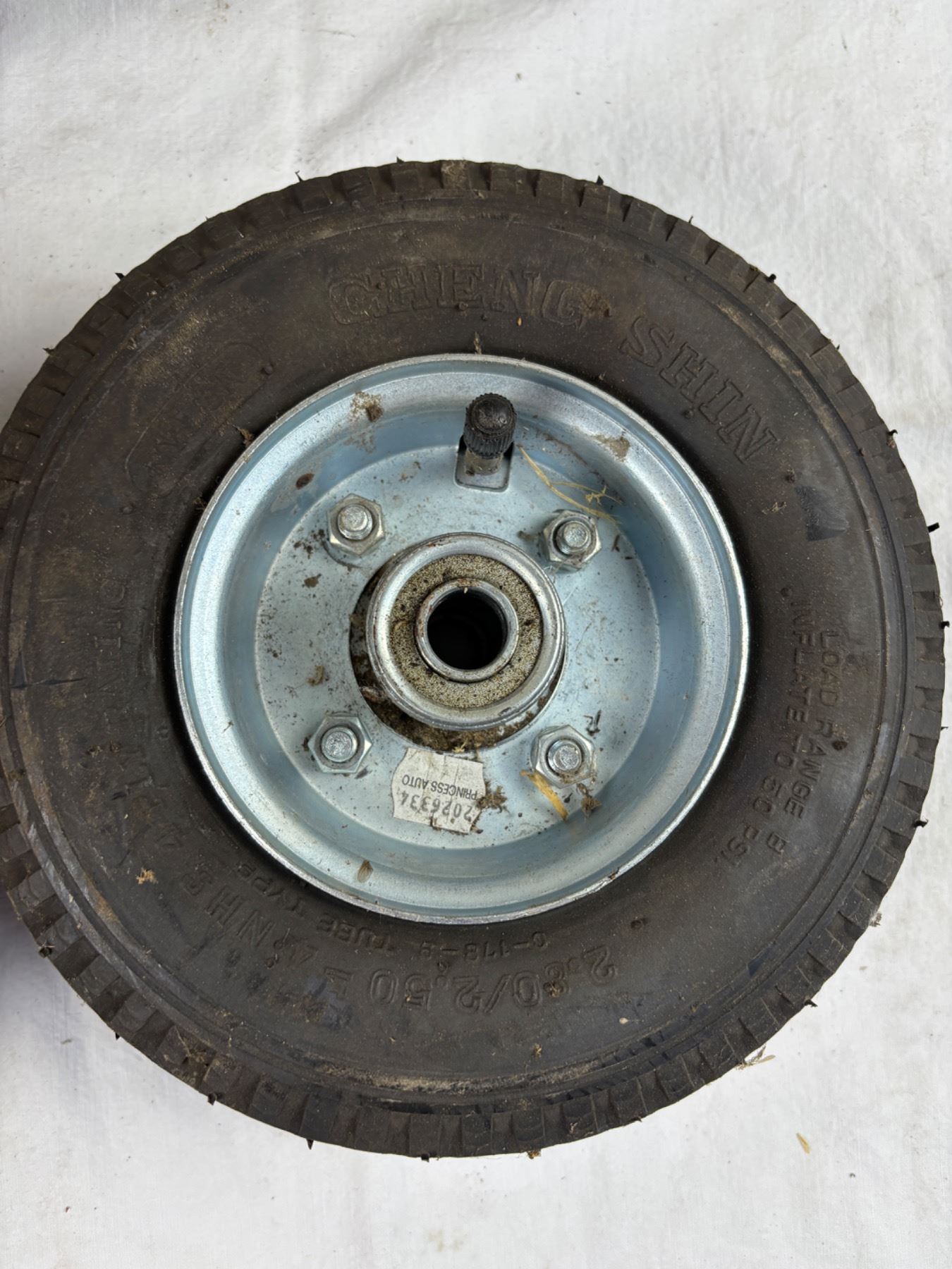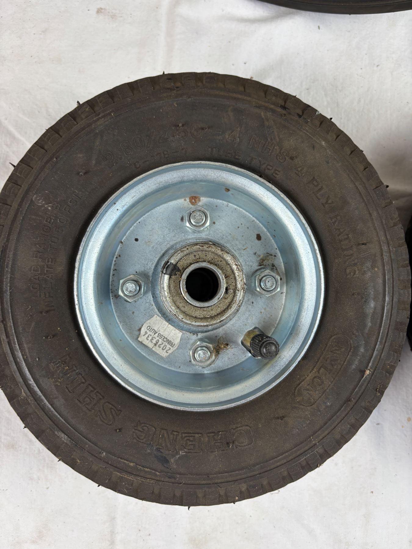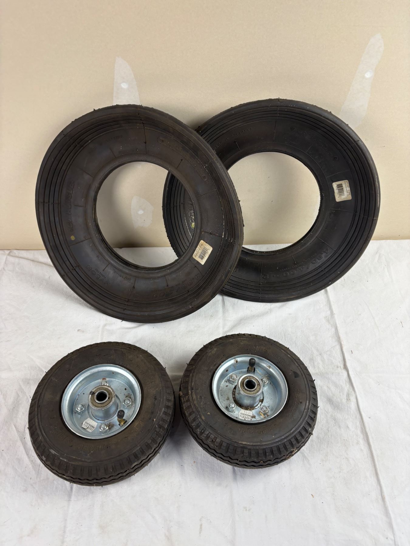 Includes two wheel barrow tires and two 2.80 / 2.50- 4 NHS 4 Ply Rating wheels