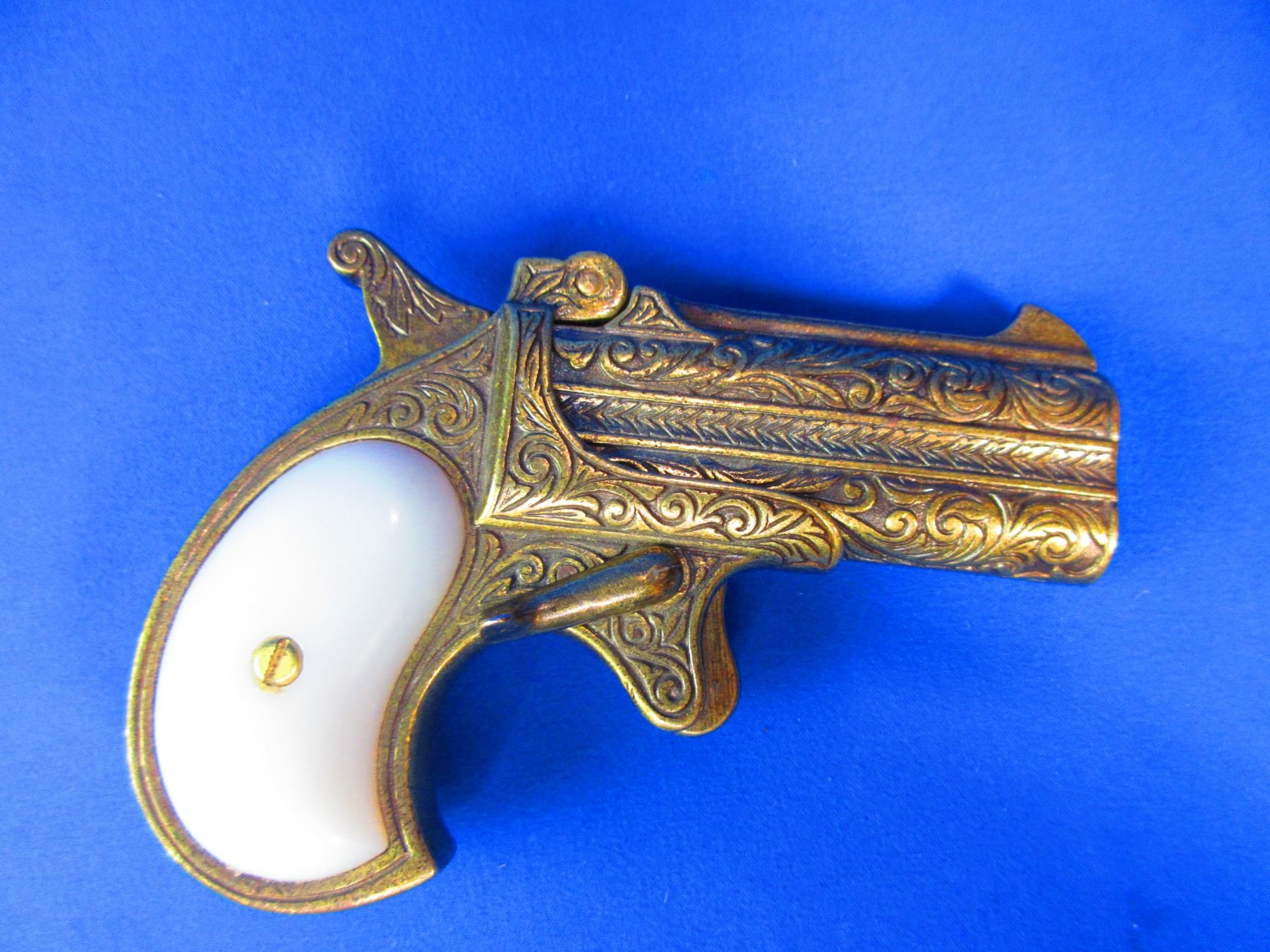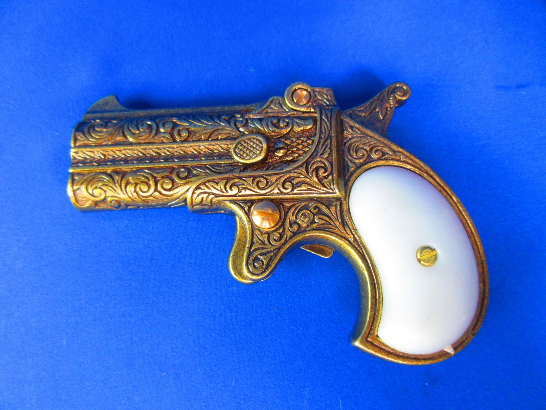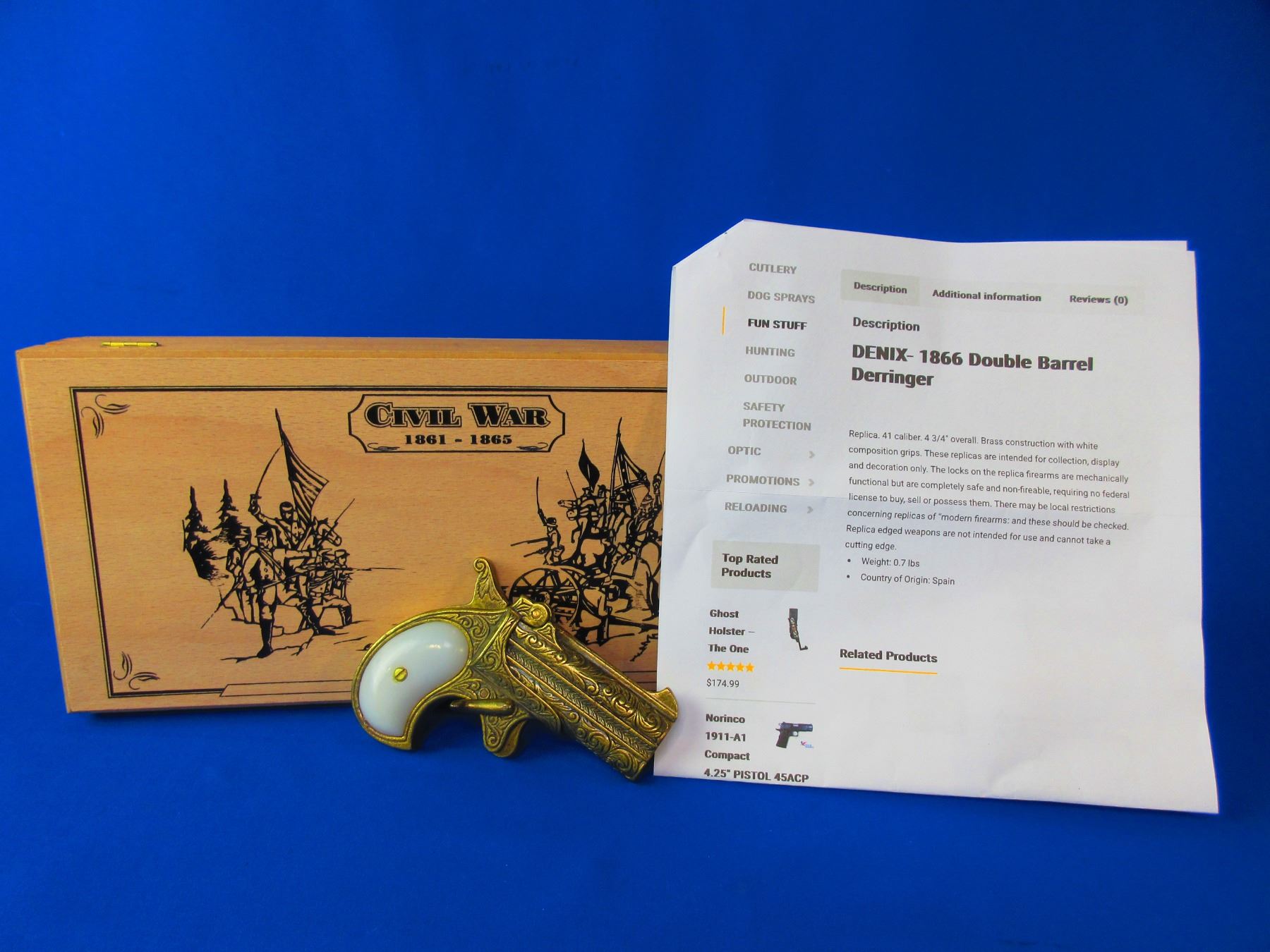 Replica 1866 Double Barreled Derringer- .41- 3" Barrels- Wooden Box- Paperwork- Not A Gun