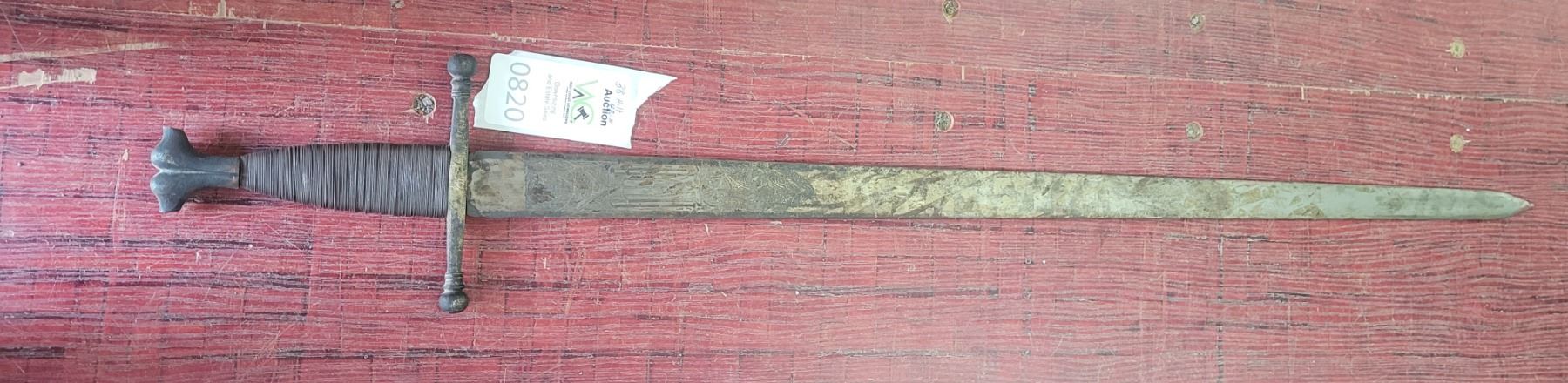 Replica sword, blunt edges. 38" to hilt, total 48" Pickup at 9 am