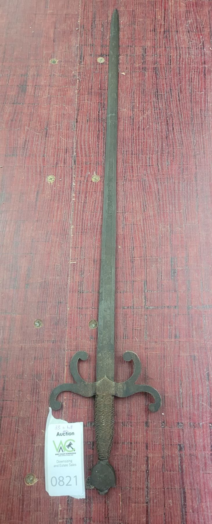 Replica sword, blunt edges. 33" to hilt and 40" total. Pickup at 9 am