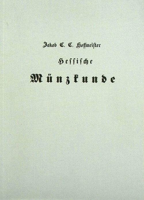 Hoffmeister, Jakob C.C. HESSISCHE MÜNZKUNDE. 1973 reprint. Small 8vo, original printed card covers. (2), viii, 144 pages; 2 folding lithographic plates of monograms. Fine. The modern reprint of this classic work.