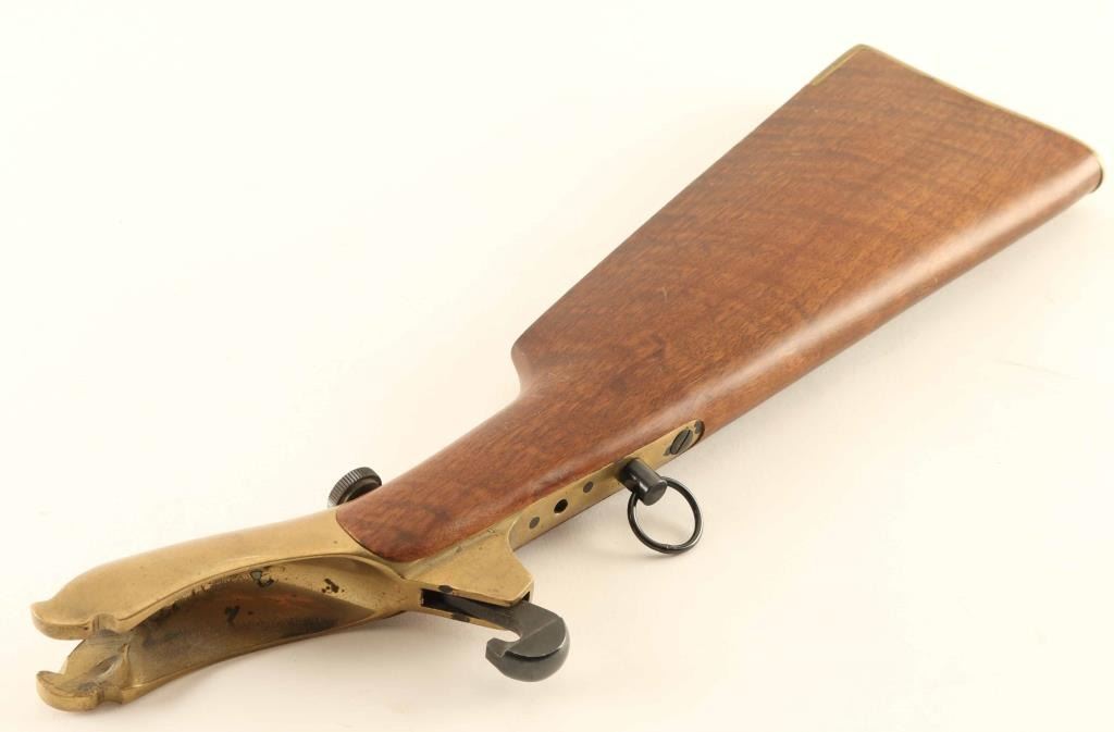 Contemporary reproduction of an 1860 Army shoulder stock comprised of walnut and brass. In overall very good condition.