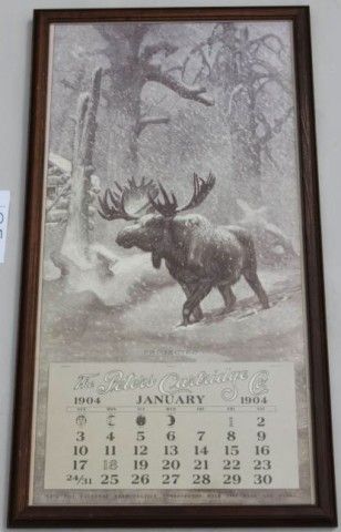 Reproduction 1988 calendar originally published 1904 by Peters Cartridge Company. Fine condition, nicely framed, some nicks on frame. Est.; $100-$300