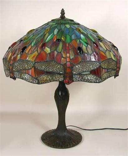 Reproduction Dragonfly Tiffany type table lamp. Excellent Condition.