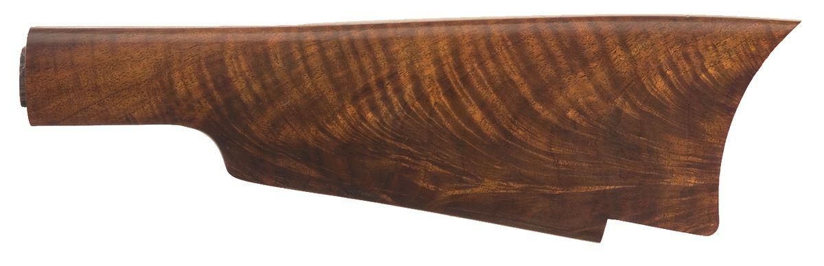 Nicely figured reproduction varnished walnut buttstock for a Henry rifle, with sling swivel stud base cut out on the left side and without a buttplate. Excellent with some scattered minor scratches.