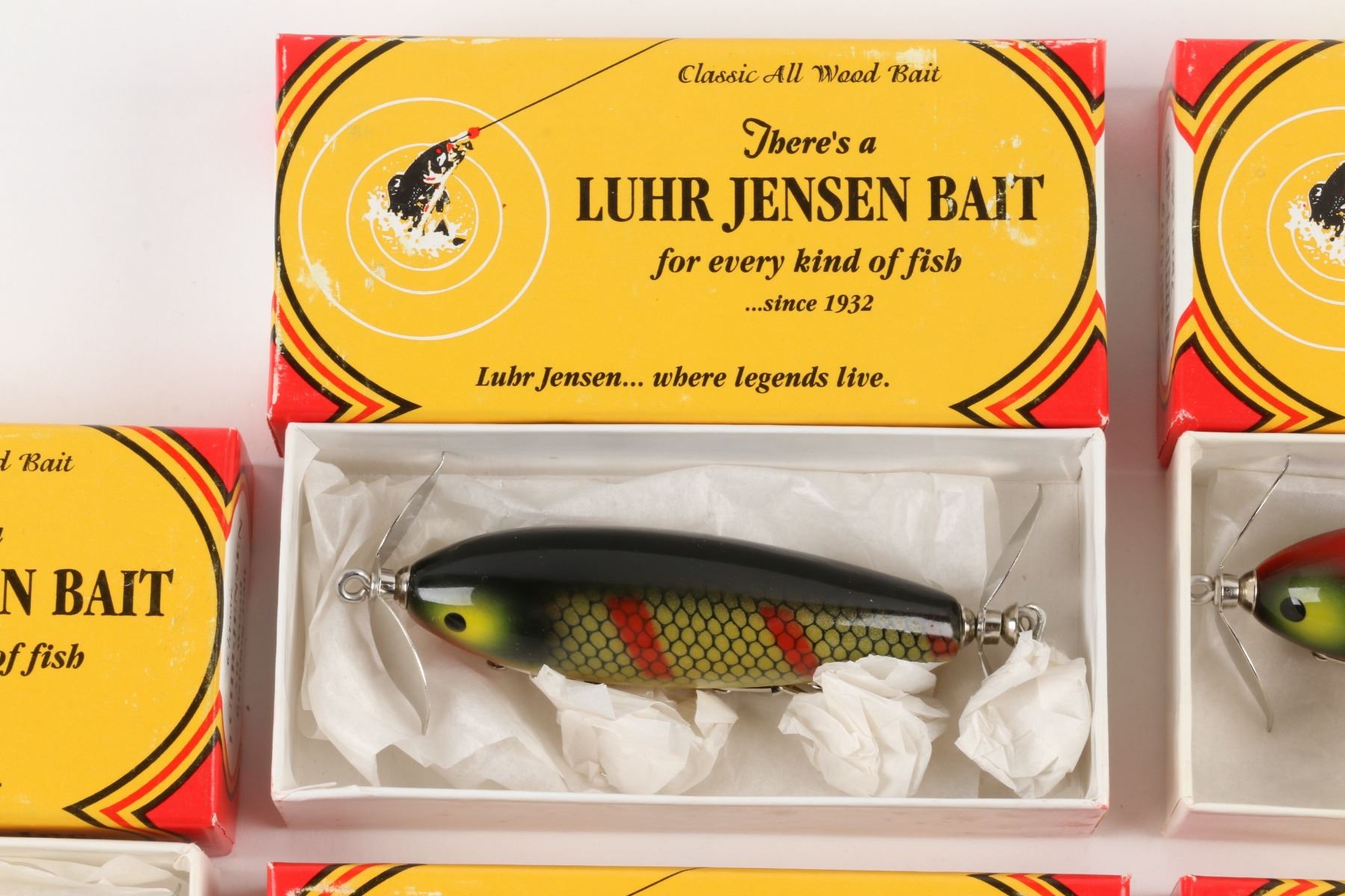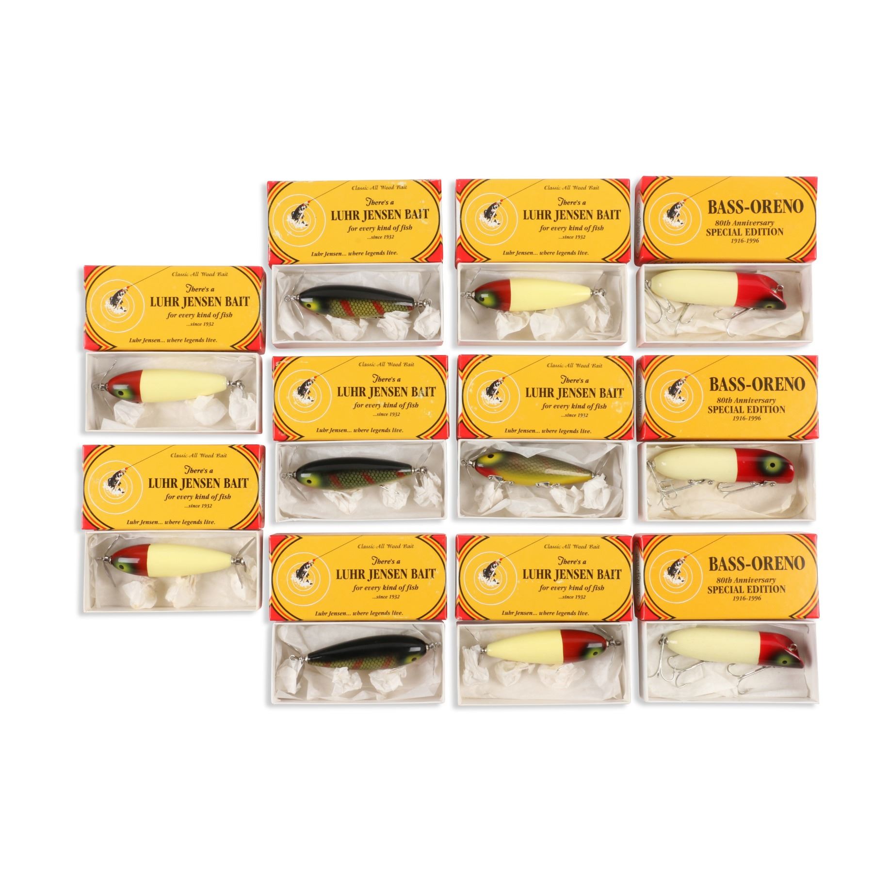 Luhr Jensen, South Bend, United States. Reproductions Boxed. Material: Wood. Quantity: 11. Grade: EX. 4.5" boxes. Est. $100-125.