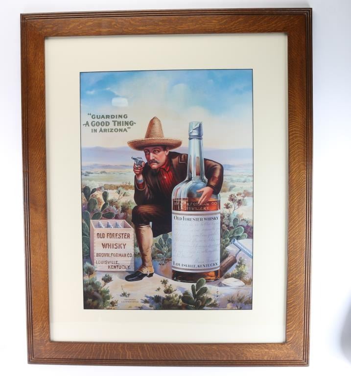 Measures: 50"H x 40"W. "Guarding A Good Thing In Arizona". In stunning quarter sawn oak frame.