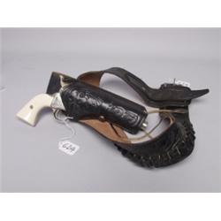 Reproduction Pistol In Lexican Leather Tooled Gun belt.