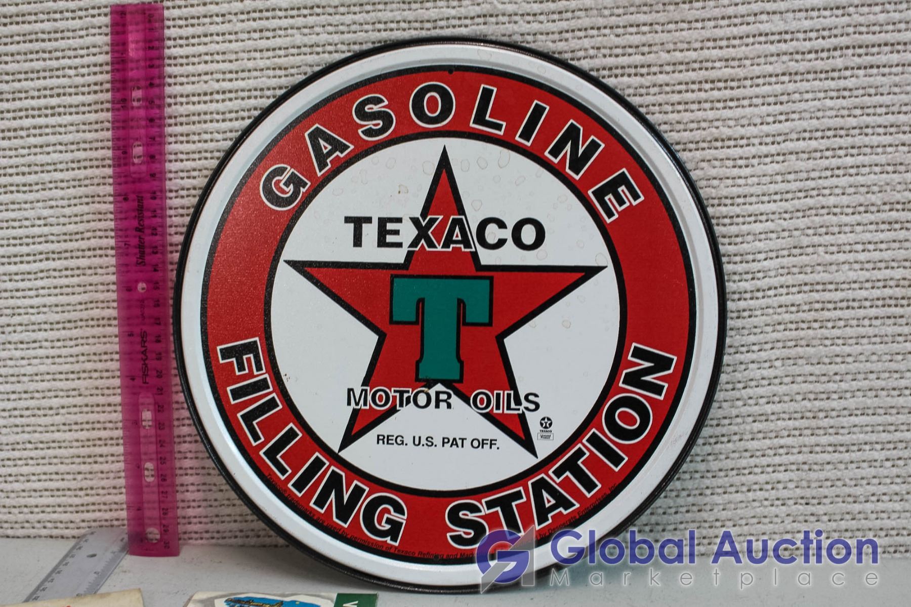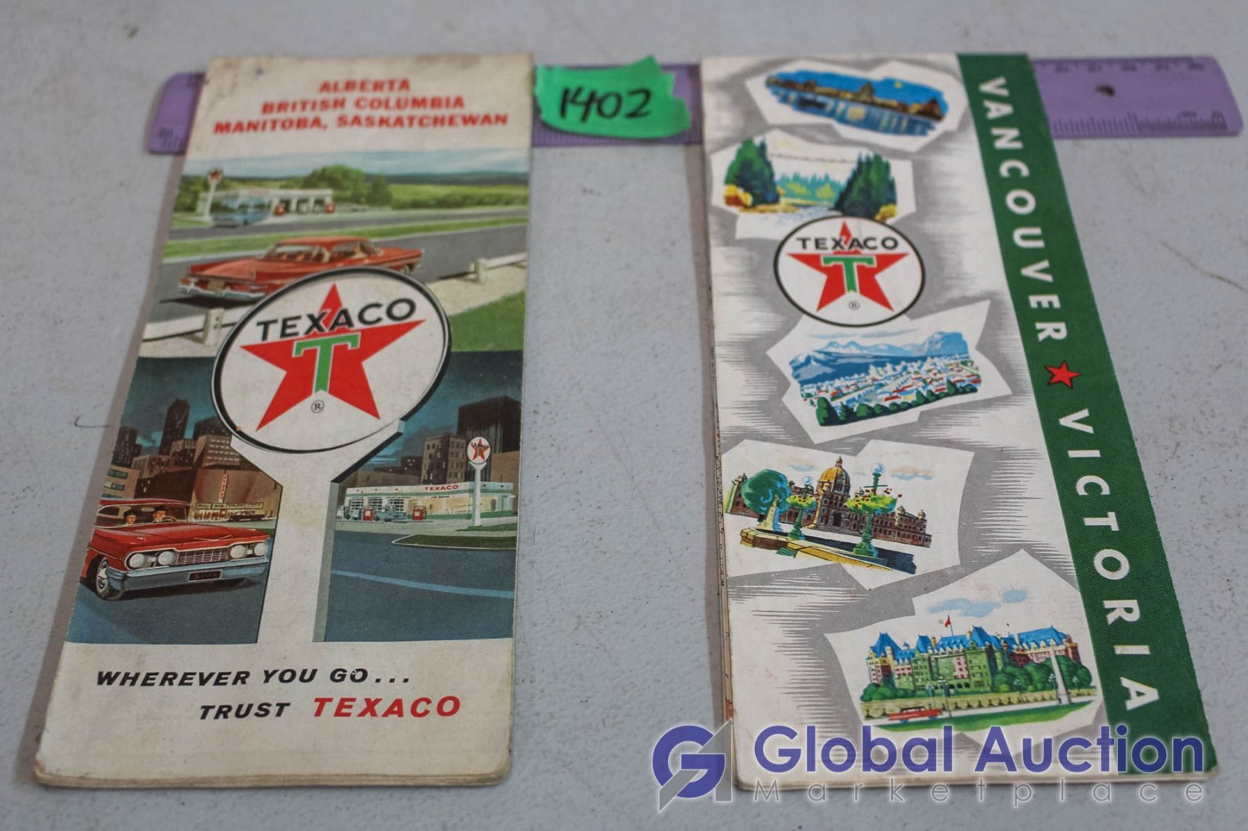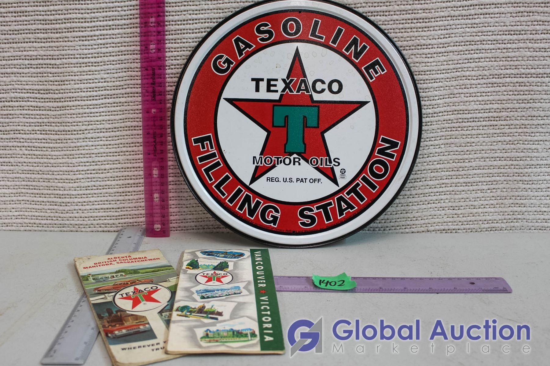 Reproduction Tin Texaco Sign & 2 Texaco Road Maps