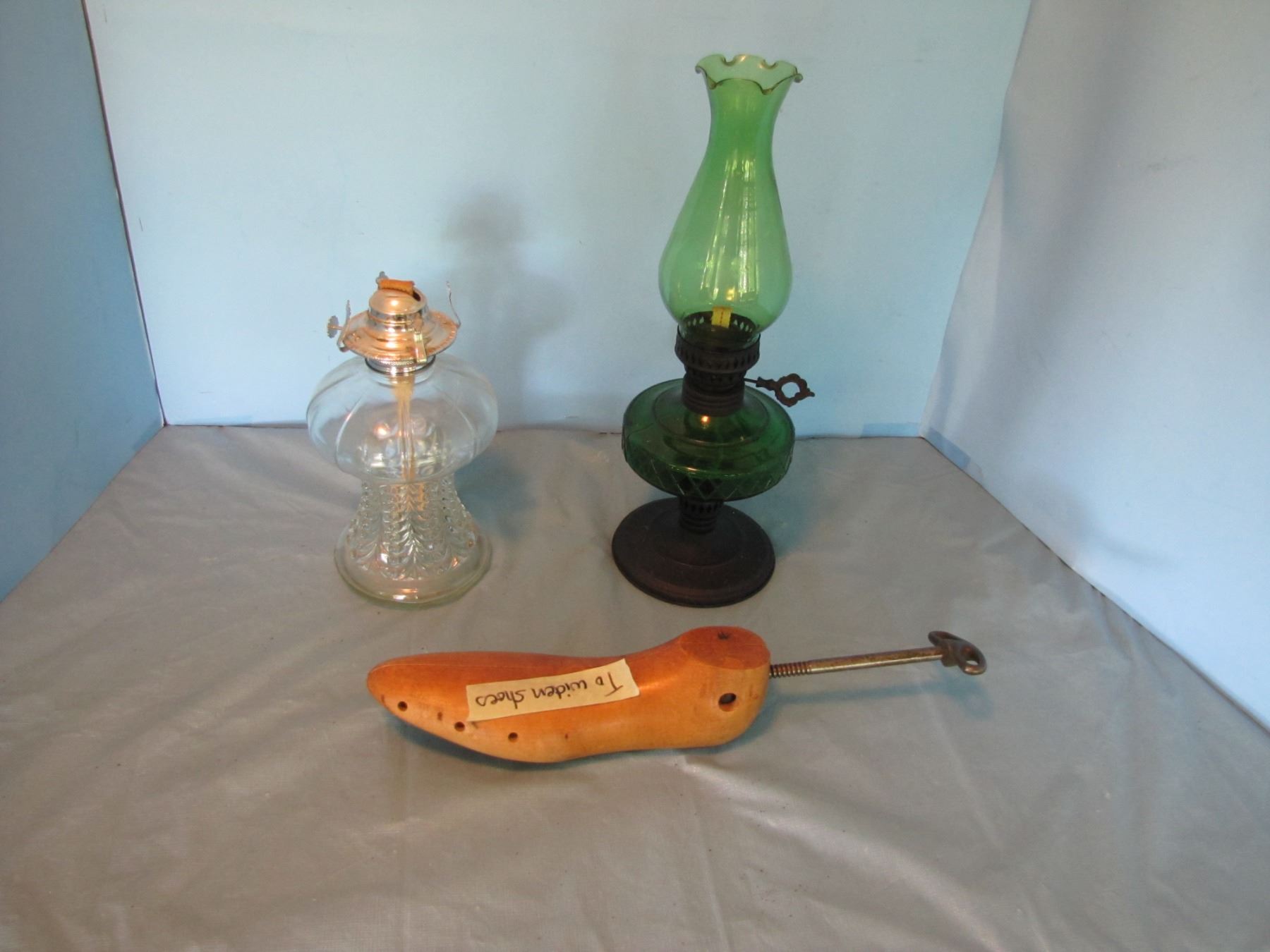 Reproduction coal oil lamps and shoe stretcher