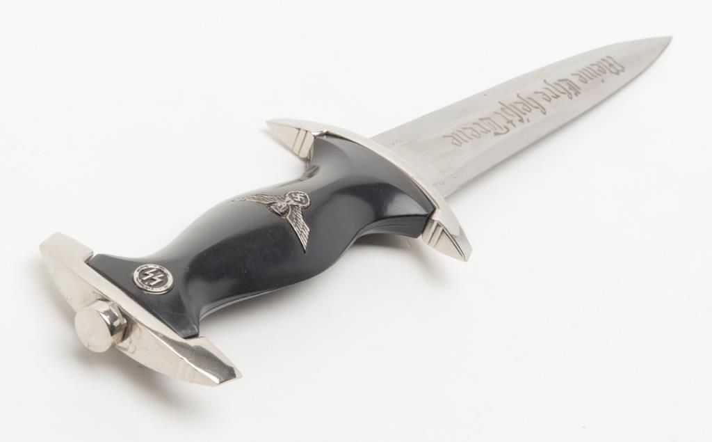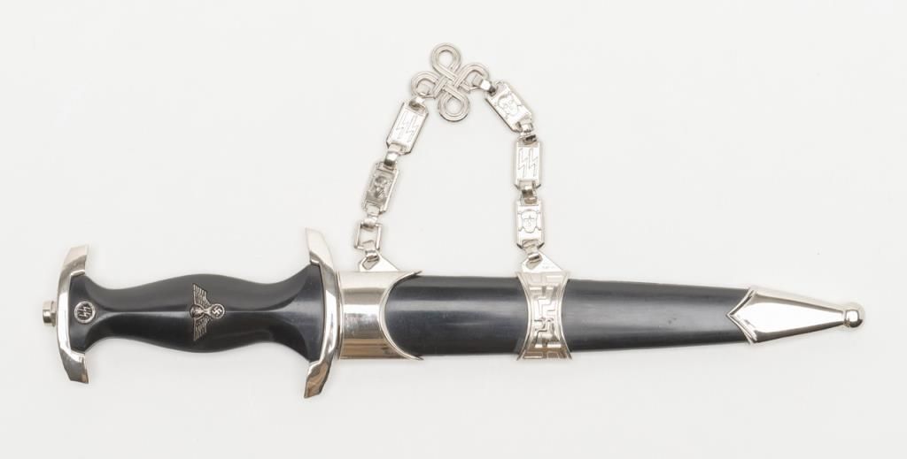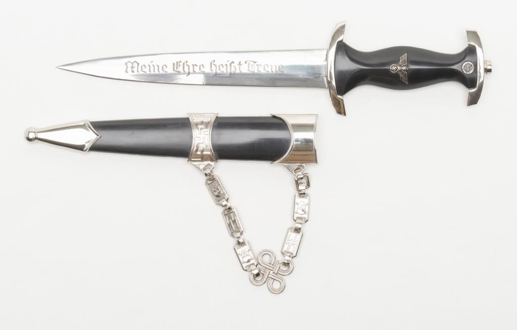 Reproduction nazi ss dagger with sheath and metal hanger. Est.: $150-$300.