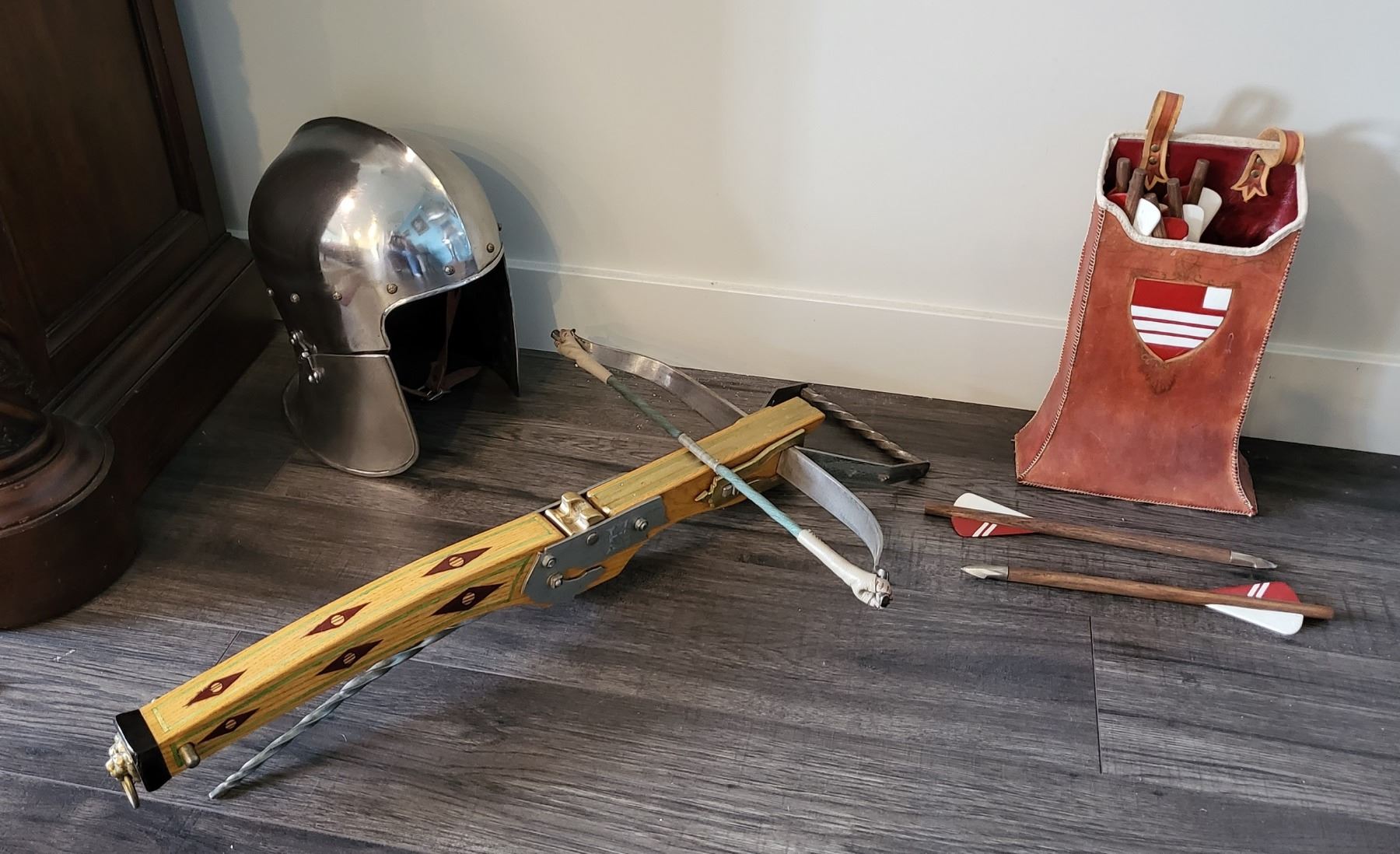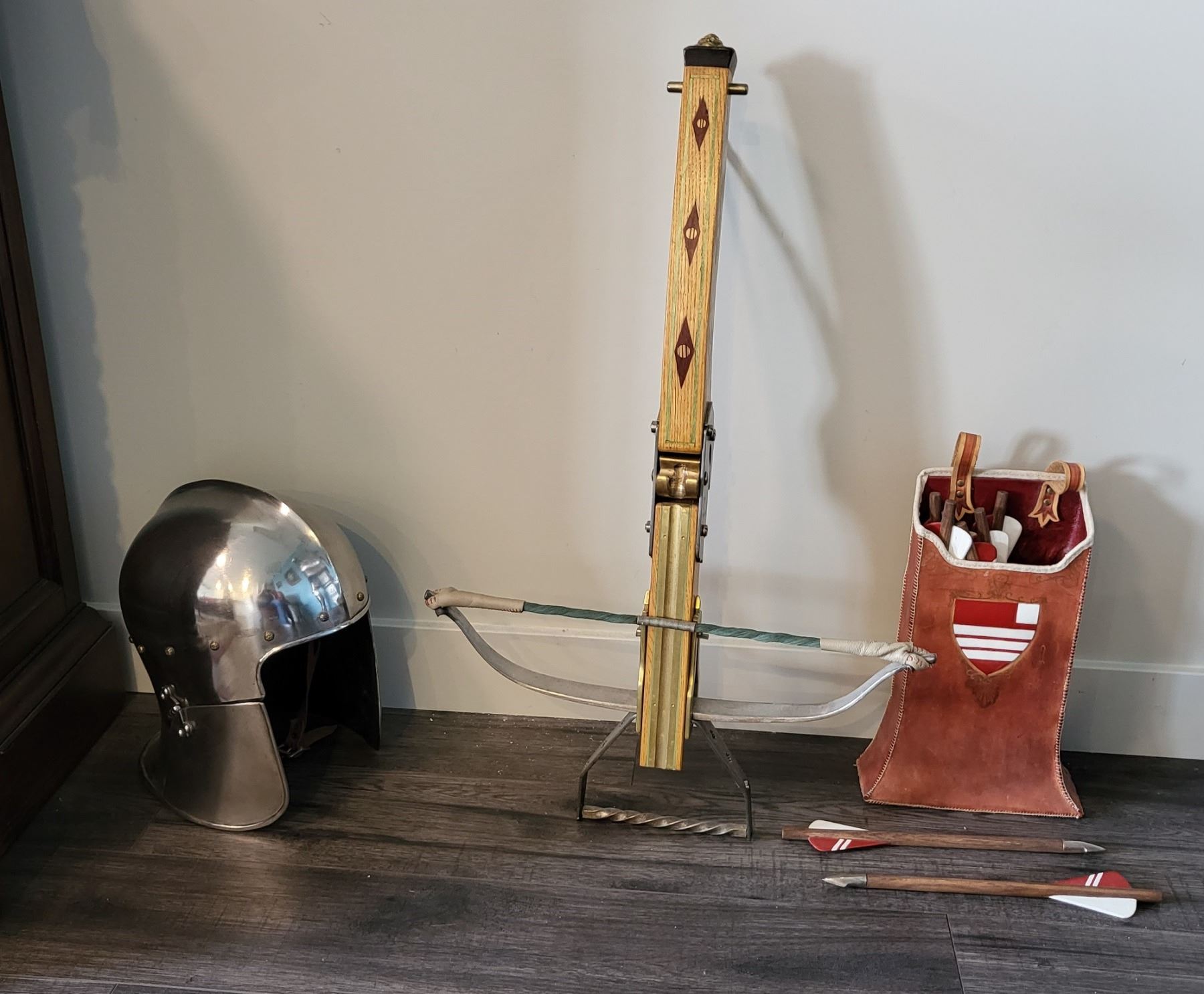 Includes full costume, archer’s sallet, crossbow, quiver with ten quarrels, belt