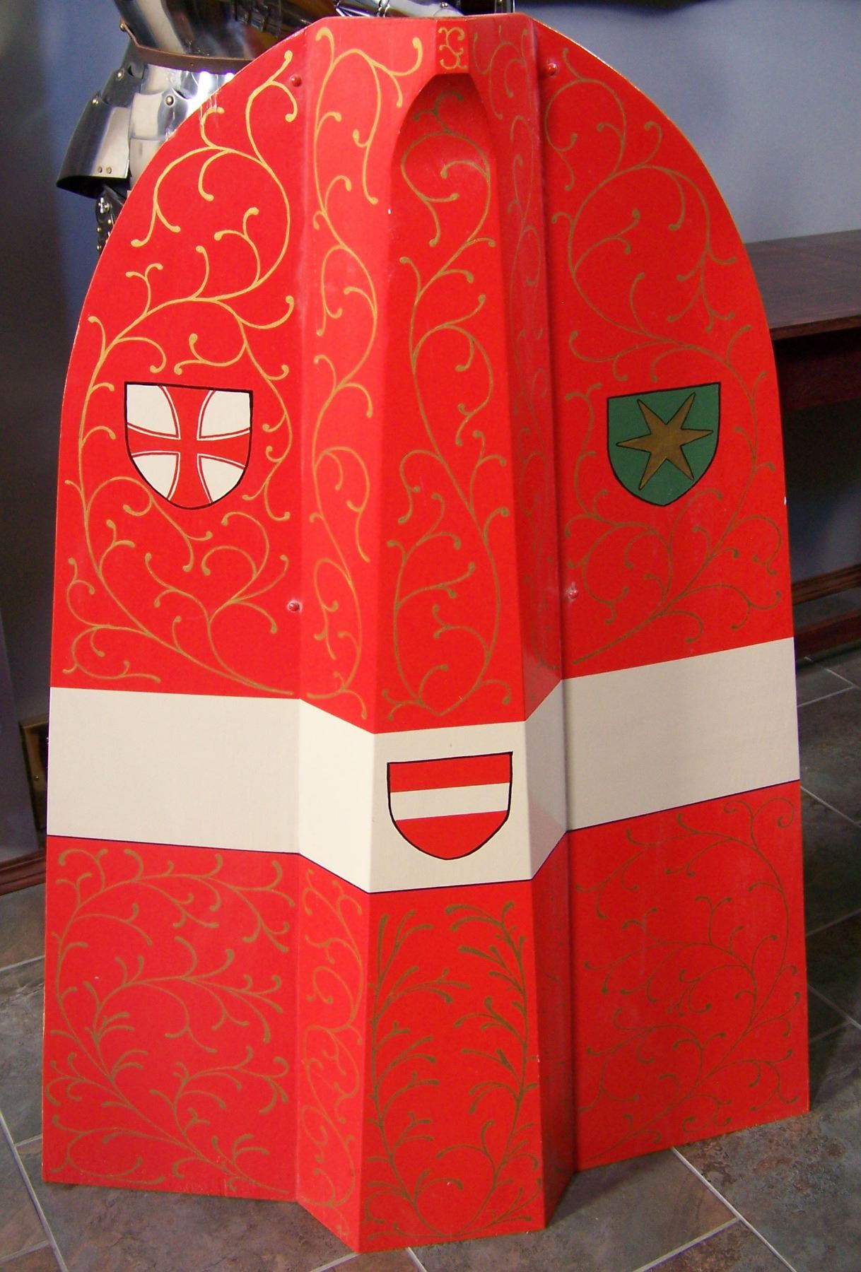 with falchion and scabbard, and pavise. Can be mounted on a mannequin.