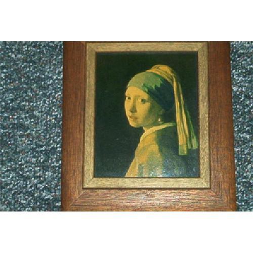 Tittle of Painting: The Head of a Girl. The back of this reproduction has handwriting that states: Johanne's Vermeer - Meisyls Sopje-KopFines Modohems - Head Of A Girl - Tete de jeuse Gill. This painting has been professionally framed by: Mr. Guy R. Watson - 5505 Nayes Avenue, S.E. Charleston, WVA., 25304 -Telephone: . Also taped to the back of the picture is a newspaper article about the Girl With A Pearl Earring. Frame measures 13 inches tall by 10 inches wide. Also featured along with this painting are two books: (1). Girl With The Pearl Earring by Tracy Chevalier, Copyright 1999 which is in mint condition. (Paperback) Also the book: The Bonesetter Daughter by AMY TAN dated 2001.DJ and Hardback Book). ISBN: 043-1; ISBN-LIMITED EDITION - 05-7. All items are in excellent to mint condition.