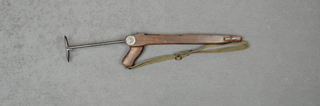 Reproduction of an M-1 carbine paratrooper  folding stock in overall good condition with  wood stock and folding metal skeleton metal  stock and drab olive woven military style  sling.  Est.:  $75-$150.